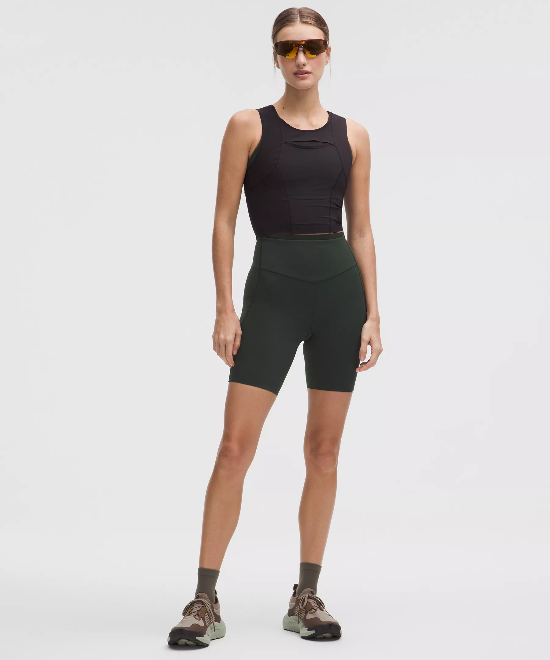 Designed for Running Cool and Sleek, Nulux™ Fabric - Cool and sleek - Quick-drying - Stretches with your stride Product Features - 360º waistband storage has four drop-in pockets and a back tunnel pocket to hold an extra layer - Side drop-in pockets - No drawcord needed—velvety-soft flocking keeps the waistband in place - No inseam for a smooth stride Material and care Materials Body: 78% Nylon22% Lycra Elastane - Mesh: 89% Recycled Nylon11% Elastane - Bra Lining: 83% Recycled Polyester17% Elastane Care Machine Wash Cold - Do Not Bleach - Line Dry - Do Not Iron - Do Not Dry Clean - Wash With Like Colors