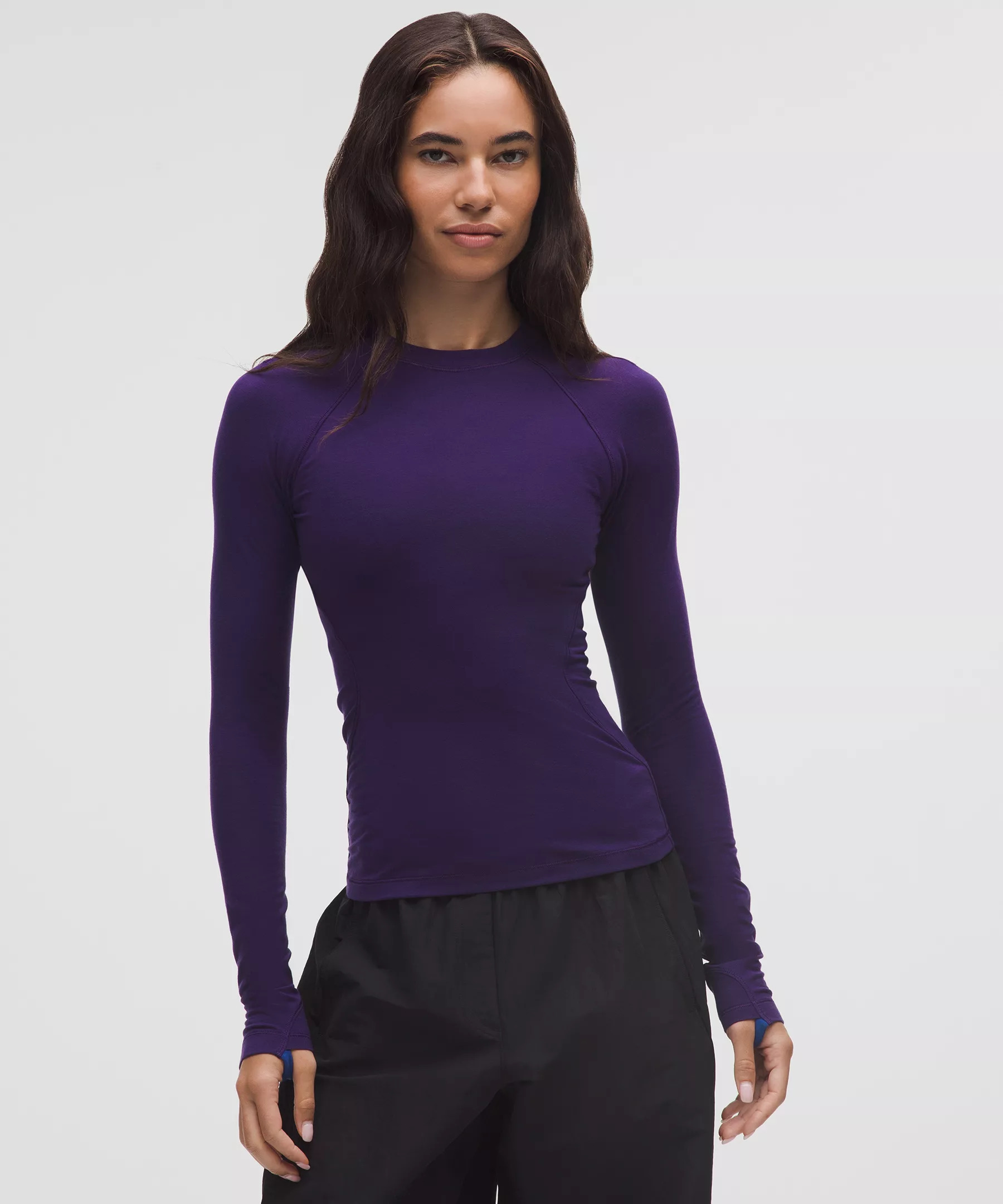Designed for Hiking Naturally Thermoregulating, Merino Wool-Blend Fabric - Naturally thermoregulating - Soft against skin - Provides mid-warmth - Be gentle and treat with care. Please refer to the material and care section below for full fibre content information and wash instructions - Fabric is derived from wood-based materials from well-managed forests Tight Fit, Hip Length - Contours your body - Sits below the waistband for moderate, everyday coverage Product Features - Thumbholes help keep sleeves down and hands warm Material and care Materials Body: 59% Tencel Lyocell31% Merino Wool10% Elastane Care Machine Wash Cold Gentle - Do Not Bleach - Tumble Dry Low - Do Not Iron - Do Not Dry Clean - Wash Separately