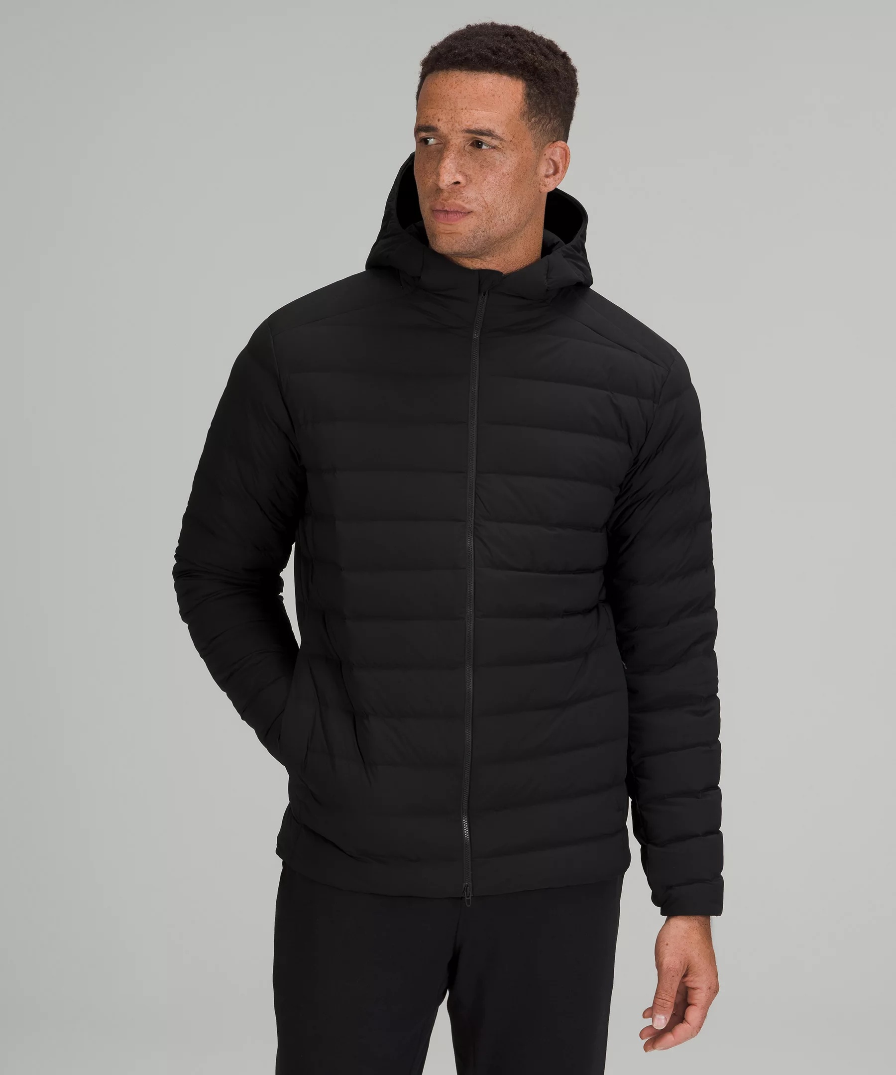Water-Resistant, DiamondStretch™ Fabric Water-resistant Windproof Two-way stretch 700-fill-power goose down provides lightweight warmth Our ThermoChannel™ construction creates channels of down insulation that hold feathers in place to lock-in warmth 100% of our down is certified to the Responsible Down Standard (RDS) by Control Union (No. 847515) Classic Fit, Hip Length Classic fit falls away from your body with room for layering Wear it on its own or under your favourite shell Product Features Cinchable hem Cinchable hood Interior zippered chest pocket Zippered exterior pockets with a hidden phone sleeve Material and care Materials Back panel: 100% Recycled polyester Trim filling: 100% Recycled polyester Pocket: 89% Nylon11% Elastane Pocket lining: 91% Nylon9% Elastane Filling: 85% Grey goose down15% Grey Goose Feathers Body: 87% Nylon13% Elastane Care Do not use fabric softener Fully zip before washing Wash with like colours Machine wash cold gentle Do not bleach Line dry Do not iron Do not dry clean Imported