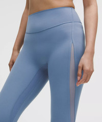Designed for Yoga Feels Buttery-Soft and Weightless, Nulu™ Fabric - So buttery soft, it feels weightless - Four-way stretch - Sweat-wicking - Breathable - Added Lycra® fibre for stretch and shape retention - Mesh fabric panels are four-way stretch and naturally breathable High Rise, 25" Length - Intended to sit above ankle Product Features - The smooth, seam-free front helps minimize bunching (and sweat marks around your crotch) so your studio exit is stress free - Subtle v-shaped back waistband seam for a contoured and defined look - Back drop-in pocket Material and care Materials Mesh: 64% Nylon36% Elastane - Body: 81% Nylon19% Lycra Elastane Care Machine Wash Cold - Do Not Bleach - Tumble Dry Low - Do Not Iron - Do Not Dry Clean - Wash With Like Colors