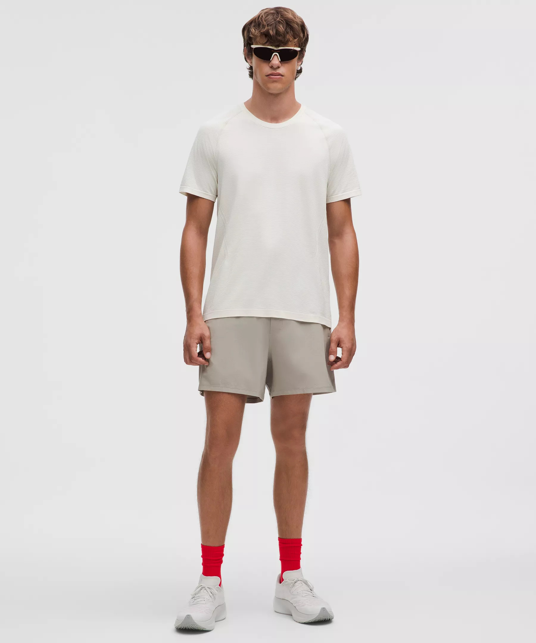 Designed for Running and Training Lightweight, Swift Fabric - Lightweight - Four-way stretch - Sweat-wicking - Quick-drying - Grid mesh inner waistband feels soft next to skin - Soft grid mesh liner is sweat-wicking and quick-drying - This product contains recycled polyester made from repurposed plastic waste Classic Fit, 5" Length - Streamlined fit that gives glutes and thighs breathing room Product Features - Grid mesh liner has a supportive built-in pouch and a pocket for drawcord strings - Low-bounce side zippered pocket and liner pockets - Front pockets Material and care Materials Body: 86% Recycled Polyester14% Elastane - Liner: 85% Recycled Polyester15% Elastane - Mesh: 90% Recycled Polyester10% Lycra Elastane - Pocket Lining: 100% Recycled Polyester Care Machine Wash Cold - Do Not Bleach - Tumble Dry Low - Do Not Iron - Do Not Dry Clean - Wash With Like Colors