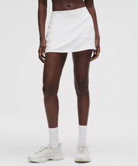Lightweight, Swift Fabric Lightweight Four-way stretch Sweat-wicking Quick-drying Luxtreme™ fabric liner is sweat-wicking and feels cool and smooth with added Lycra® fibre for stretch and shape retention Fit Information Mid rise Skirt length is measured at the centre front, from the top of the waistband to the hem Skirt length by size: 0–2: 13", 4–6: 13.5", 8–10: 14", 12–14: 14.5", 16–18: 15”, 20: 15” Liner length for all sizes: 3.5” Product Features Secure back pocket Stash your stuff in the side drop-in pockets on the short liner Material and care Materials Liner: 87% Nylon13% Lycra Elastane Pocket: 82% Nylon18% Lycra Elastane Waistband: 77% Nylon23% Lycra Elastane Body: 86% Recycled Polyester14% Elastane Care Machine Wash Cold Do Not Bleach Tumble Dry Low Do Not Iron Do Not Dry Clean Wash With Like Colors