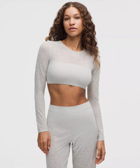 Designed for Yoga Sleek, Lace Mesh Fabric Overlay - Sleek - Four-way stretch - Quick-drying - Naturally breathable - Built-in bandeau made from our buttery-soft Nulu™ fabric that feels weightlessly light and is sweat-wicking and four-way stretch - Be gentle and treat with care. Please refer to the material and care section below for full fibre content information and wash instructions Light Support, A/B Cups - Intended to provide light support for A/B cups - Tight fit contours your body - Super-cropped length cuts just below the bust - Intended for low-impact activities Product Features - Built-in shelf bra for added support and coverage - Pockets for optional, removable cups Material and care Materials Body: 55% Nylon45% Elastane - Middle Layer: 83% Recycled Polyester17% Elastane - Bra Lining: 81% Nylon19% Lycra Elastane Care Machine Wash Cold - Do Not Bleach - Tumble Dry Low - Do Not Iron - Do Not Dry Clean - Turn Garment Inside Out - Wash With Like Colors