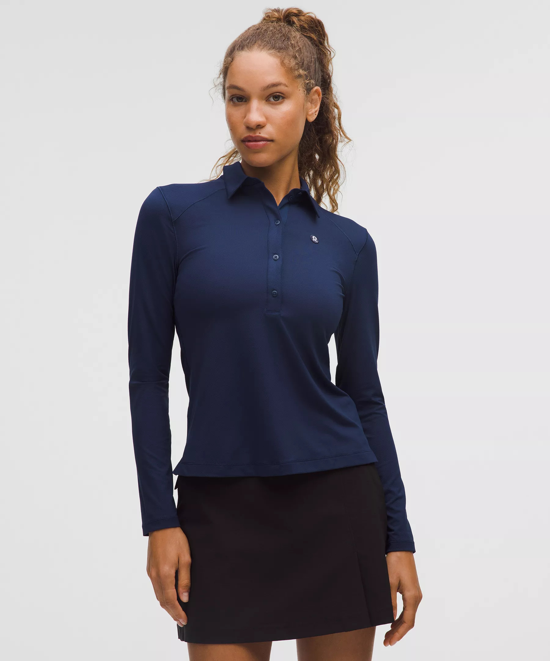 Quick-Dry Long-Sleeve Polo Shirt *Straight Hem