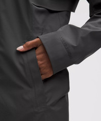 Designed for Casual Waterproof, Glyde™ Fabric - Waterproof - Seam-sealed to keep you dry - Breathable - Windproof Classic Fit, Thigh Length - Classic fit falls away from your body with room for layering Product Features - Back vent strategically placed to provide airflow - Cinchable waist with a slim slide-and-lock toggle - Cinchable hood - Zippered pockets with a hidden phone sleeve - Interior pockets hold the essentials - Flip up the cuffs to reveal reflective details - Two-way zipper Material and care Materials Lining: 100% Polyester - Pocket Lining: 100% Polyester - Mesh: 89% Nylon11% Elastane - Body: Face: 100% PolyesterMiddle: 100% PolyurethaneBack: 100% Polyester Care Machine Wash Cold - Do Not Bleach - Tumble Dry Low - Do Not Iron - Do Not Dry Clean - Wash With Like Colors
