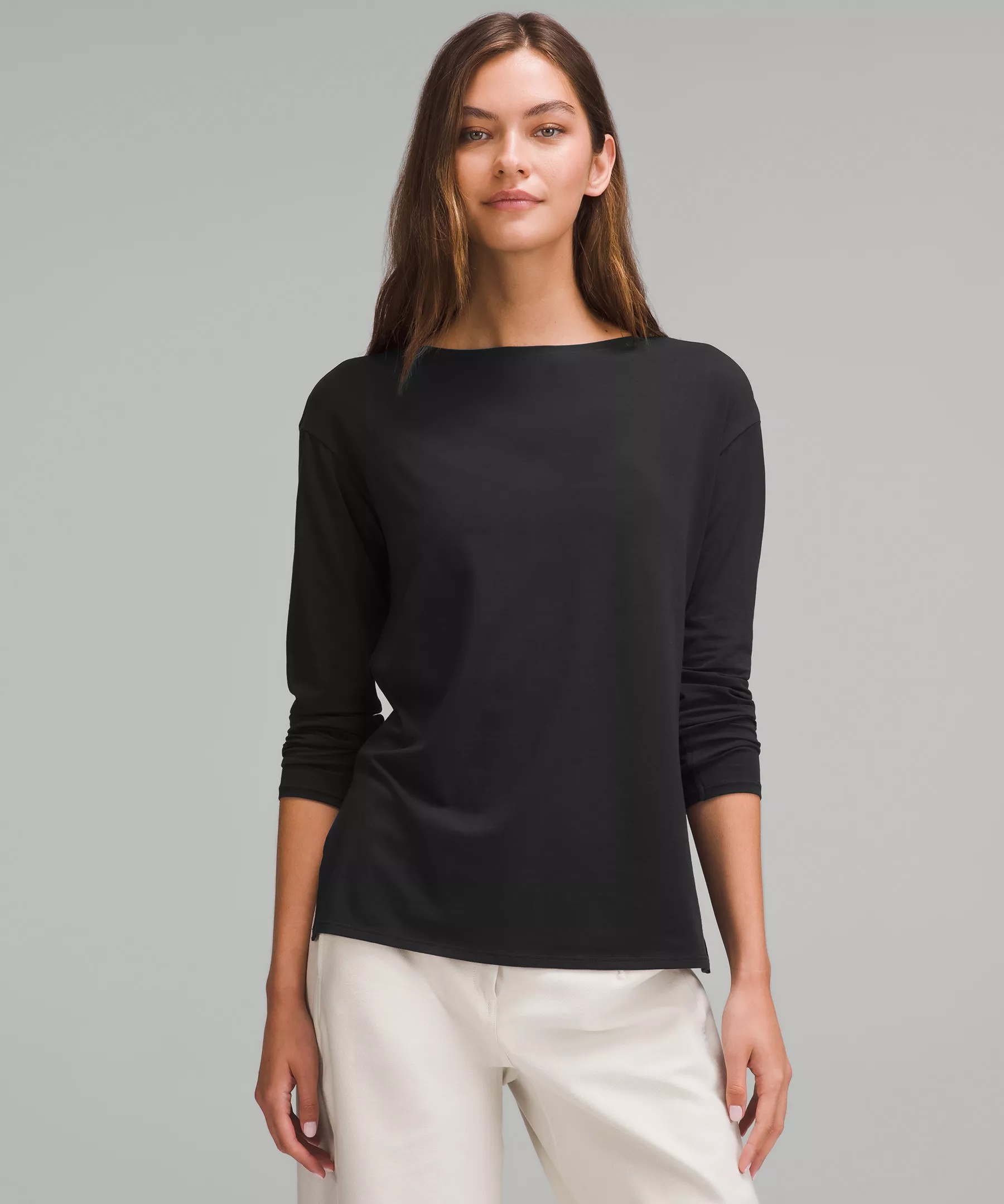 Relaxed-Fit Boatneck Long-Sleeve Shirt
