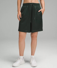 Quick-Drying, Mesh Fabric Quick-drying Abrasion-resistant High Rise, 8" Length Relaxed fit is roomy through glutes and thighs Product Features Hand pockets Drawcord to customize fit Locker loop for easy hanging Material and care Materials Pocket lining: 85% Nylon15% Elastane Body: 100% Recycled polyester Inner layer lining: 81% Nylon19% Lycra® elastane Care Wash with like colours Machine wash cold Do not bleach Tumble dry low Do not iron Do not dry clean Imported