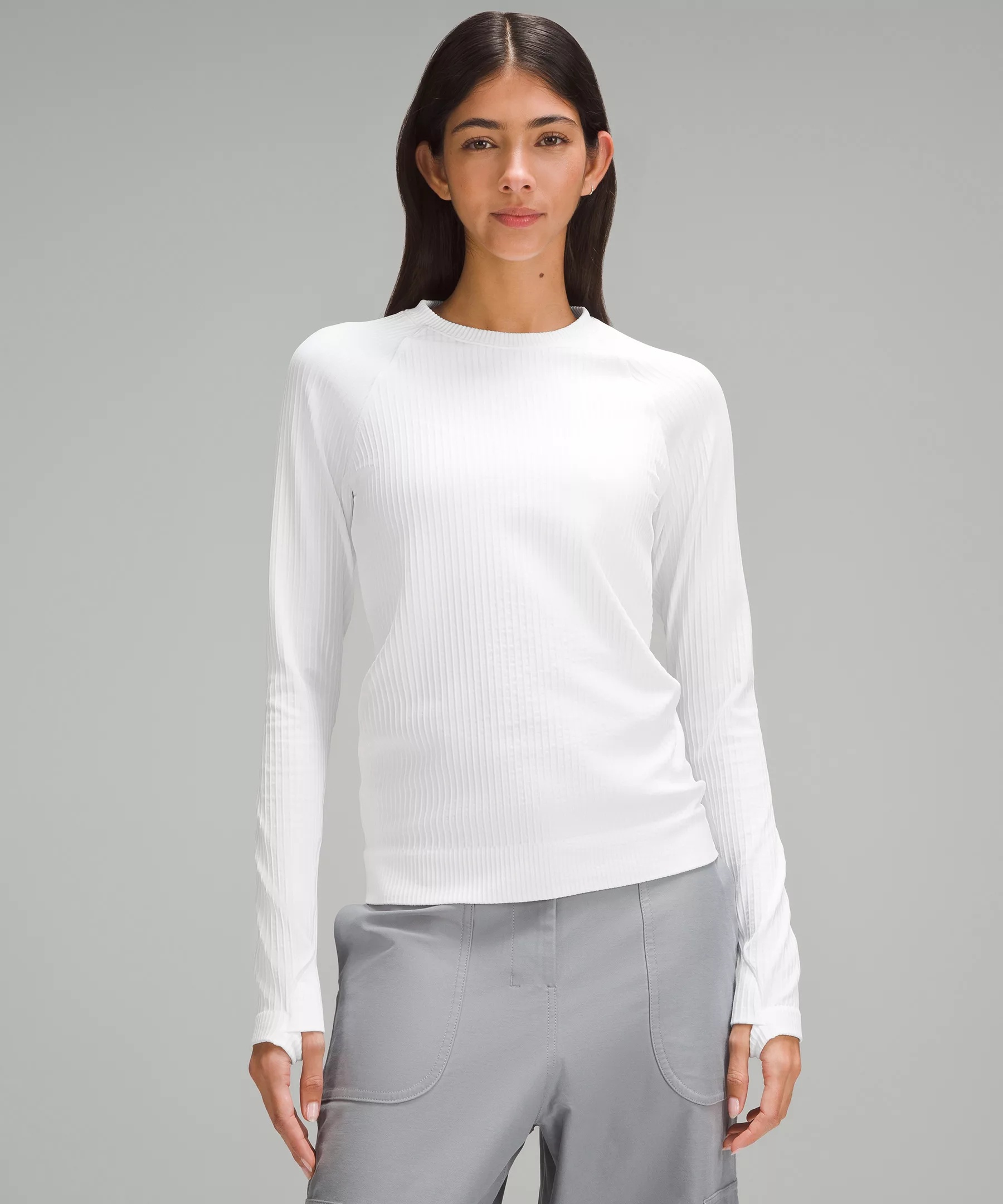 Skip-the-Chafe, Seamless Construction Minimal seams to reduce chafe Sweat-wicking Four-way stretch Cozy and warm Slim Fit, Hip Length Skims your body Sits below the waistband for moderate, everyday coverage Product Features Thumbholes keep your sleeves in place This fabric was treated with No-Stink Zinc™ to inhibit the growth of odour-causing bacteria Material and care Materials All: 57% Nylon35% Recycled polyester8% Elastane Care Wash with like colours Machine wash cold Do not bleach Tumble dry low Do not iron Do not dry clean Imported