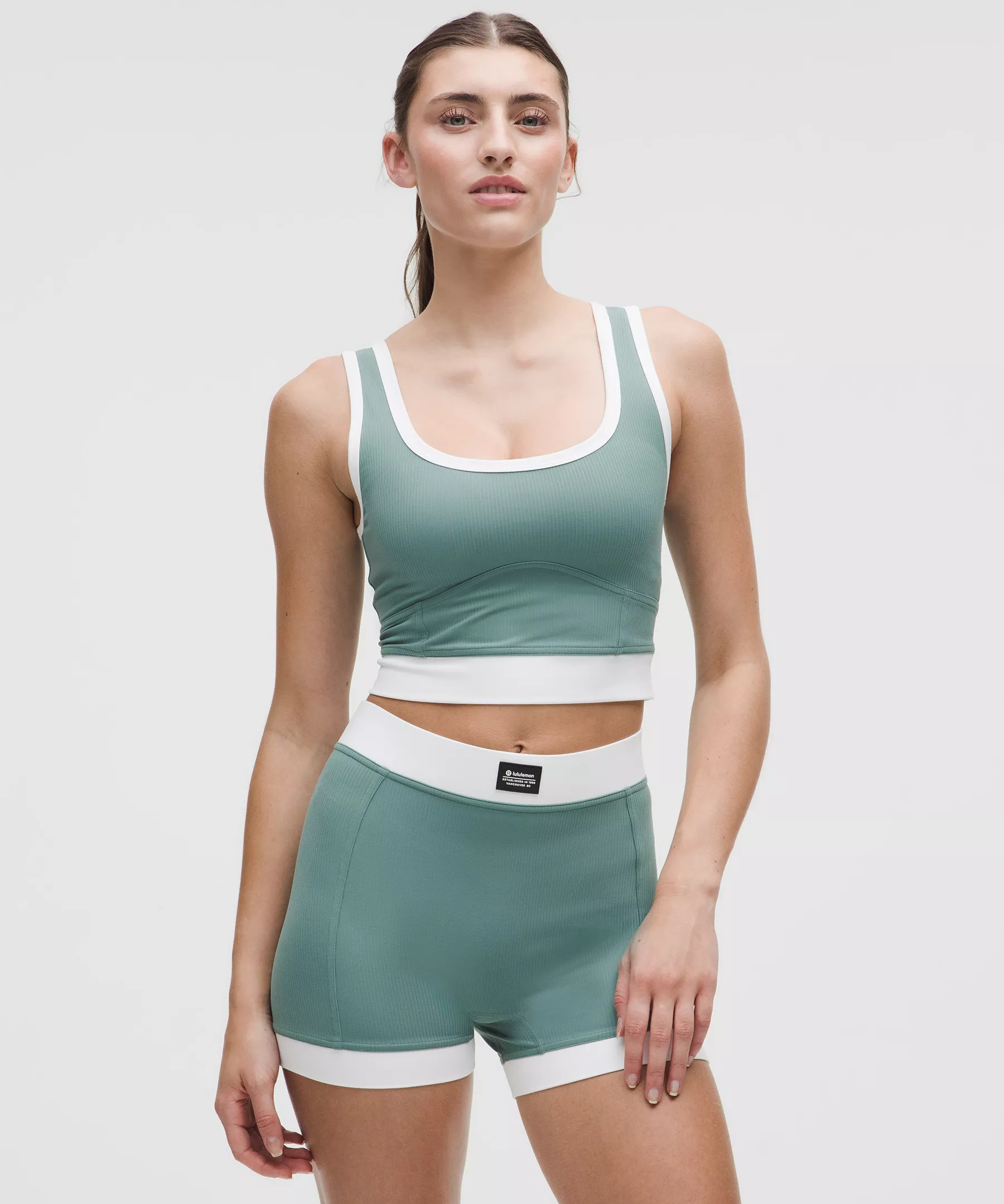 Designed for Training and Pilates Buttery-Soft, Ribbed Nulu™ Fabric - Buttery-soft, ribbed texture - Sweat-wicking - Quick-drying - Four-way stretch - Added Lycra® fibre for stretch and shape retention Light Support, B/C Cups - Intended to provide light support for B/C cups - Tight fit contours your body - Cropped length is cut above the waist—perfect with high-rise pants - Intended for low-impact activities Product Features - Built-in shelf bra for added support and coverage - Pockets for optional, removable cups Material and care Materials Bra Lining: 83% Recycled Polyester17% Elastane - Cup Lining: 90% Recycled Polyester10% Lycra Elastane - Contrast: 81% Recycled Polyester19% Lycra Elastane - Body: 78% Nylon22% Lycra Elastane Care Machine Wash Cold - Do Not Bleach - Tumble Dry Low - Do Not Iron - Do Not Dry Clean - Wash With Like Colors