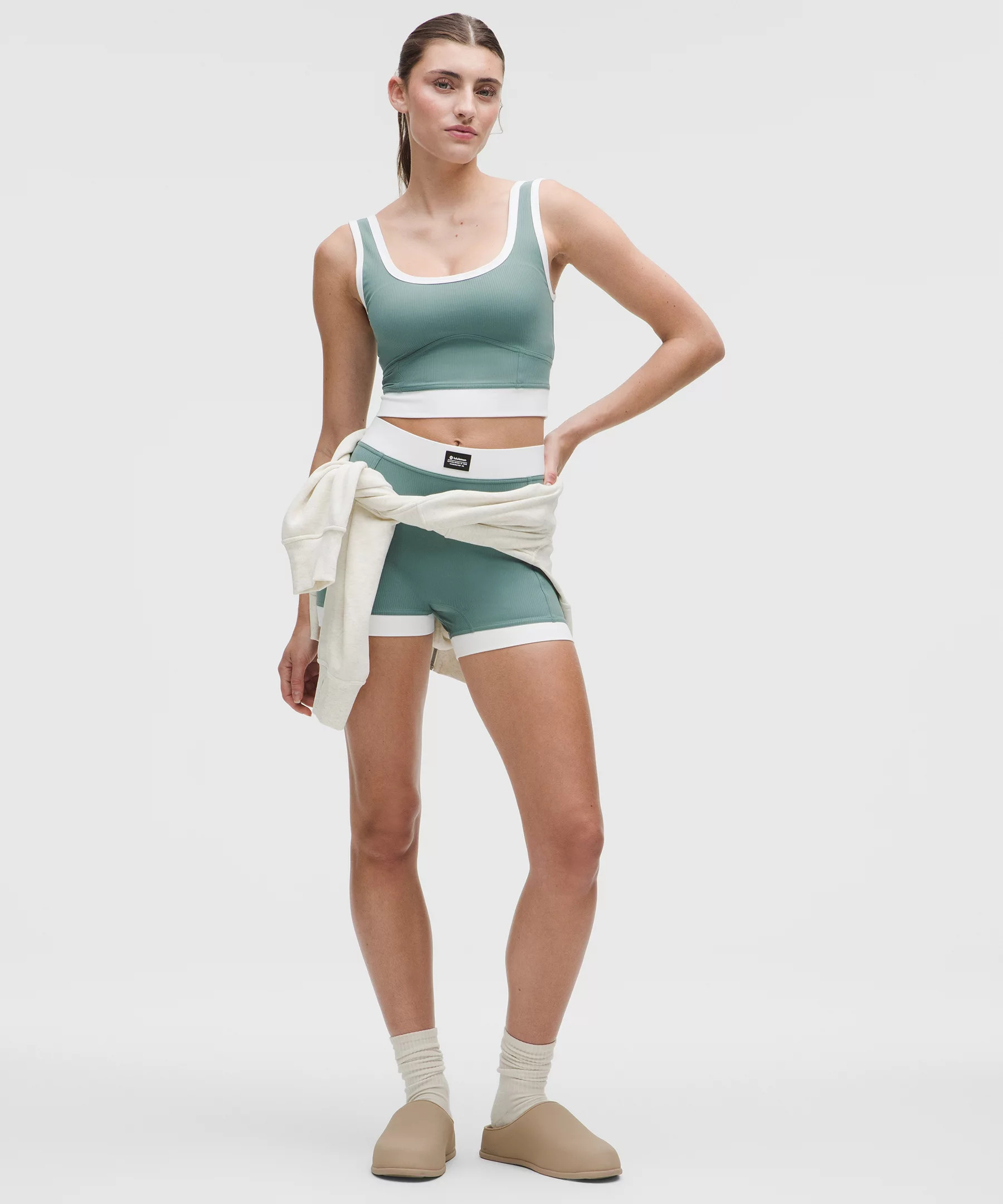Designed for Training and Pilates Buttery-Soft, Ribbed Nulu™ Fabric - Buttery-soft, ribbed texture - Sweat-wicking - Quick-drying - Four-way stretch - Added Lycra® fibre for stretch and shape retention Product Features - No front seam for a smooth fit and feel Material and care Materials Contrast: 81% Recycled Polyester19% Lycra Elastane - Body: 78% Nylon22% Lycra Elastane Care Machine Wash Cold - Do Not Bleach - Tumble Dry Low - Do Not Iron - Do Not Dry Clean - Wash With Like Colors