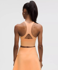 Designed for Tennis Smooth and Supportive, Ultralu™ Fabric - Smooth support that moulds to your body - Sweat-wicking - Quick-drying - Four-way stretch - Abrasion-resistant Medium Support, B/C Cups - Intended to provide medium support for B/C cups - Tight fit contours your body - Cropped length is cut above the waist—perfect with high-rise pants - Intended for medium-impact activities Product Features - Built-in shelf bra for added support and coverage - Pockets for optional, removable cups - High neck for added coverage Material and care Materials Cup Lining: 90% Recycled Polyester10% Lycra Elastane - Body: 76% Nylon24% Lycra Elastane - Bra Lining: 90% Recycled Polyester10% Lycra Elastane Care Machine Wash Cold - Do Not Bleach - Line Dry - Do Not Iron - Do Not Dry Clean - Wash With Like Colors