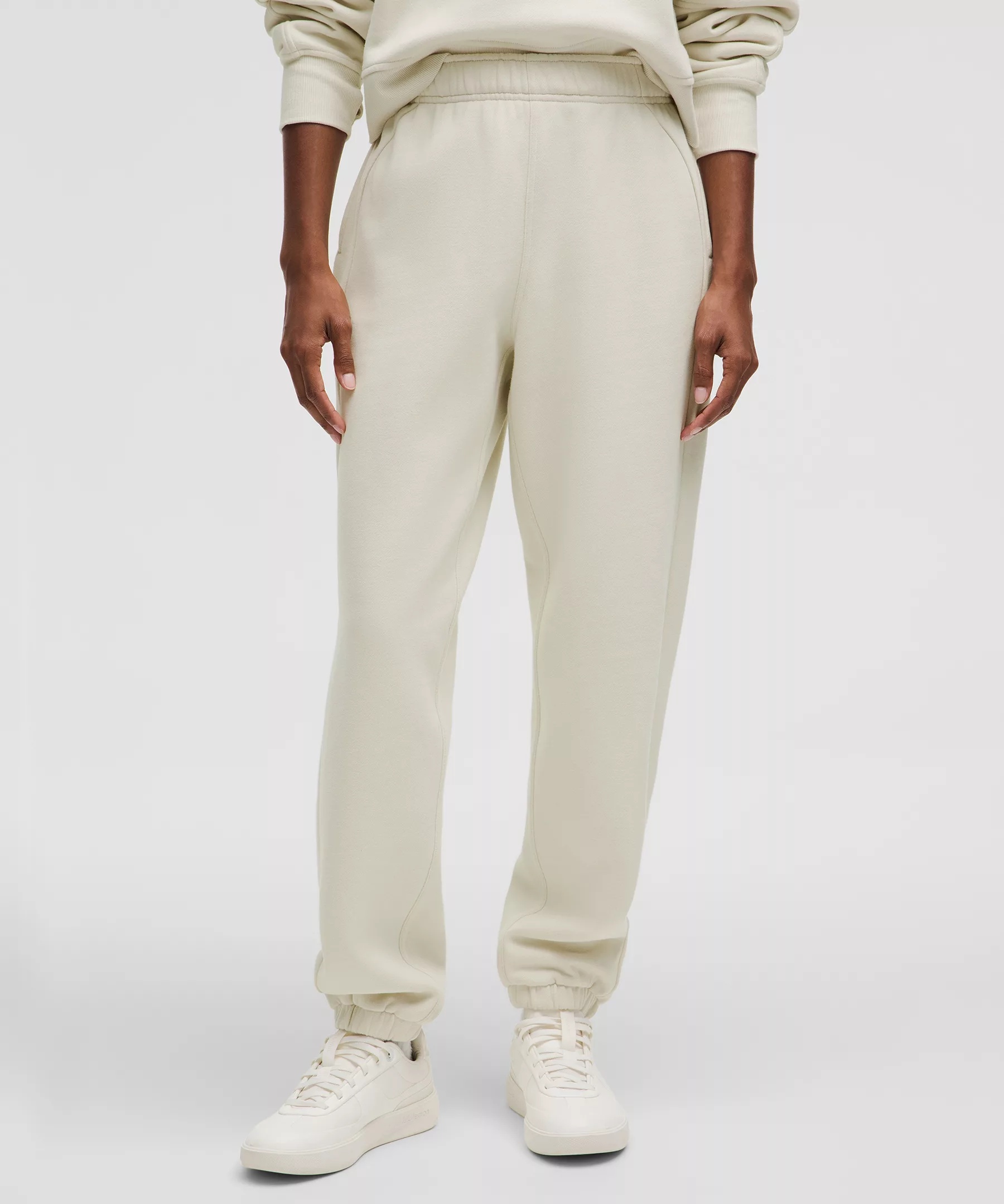 Naturally Breathable, Cotton-Blend Fleece Fabric Naturally breathable Soft against skin Lightweight warmth Mid Rise, Full Length Oversized fit is exaggerated and feels extra roomy Intended to sit at ankle for heights of 5'5"-5'8" Product Features Hand pockets with hidden card sleeve Cinch the interior drawcord to adjust your fit. Roll the waistband down to wear the drawcord on the outside Material and care Materials Pockets: 95% Cotton5% Elastane Body: 70% Cotton30% Recycled Polyester Care Wash with like colours Machine wash cold Do not bleach Tumble dry low Do not iron Do not dry clean Imported