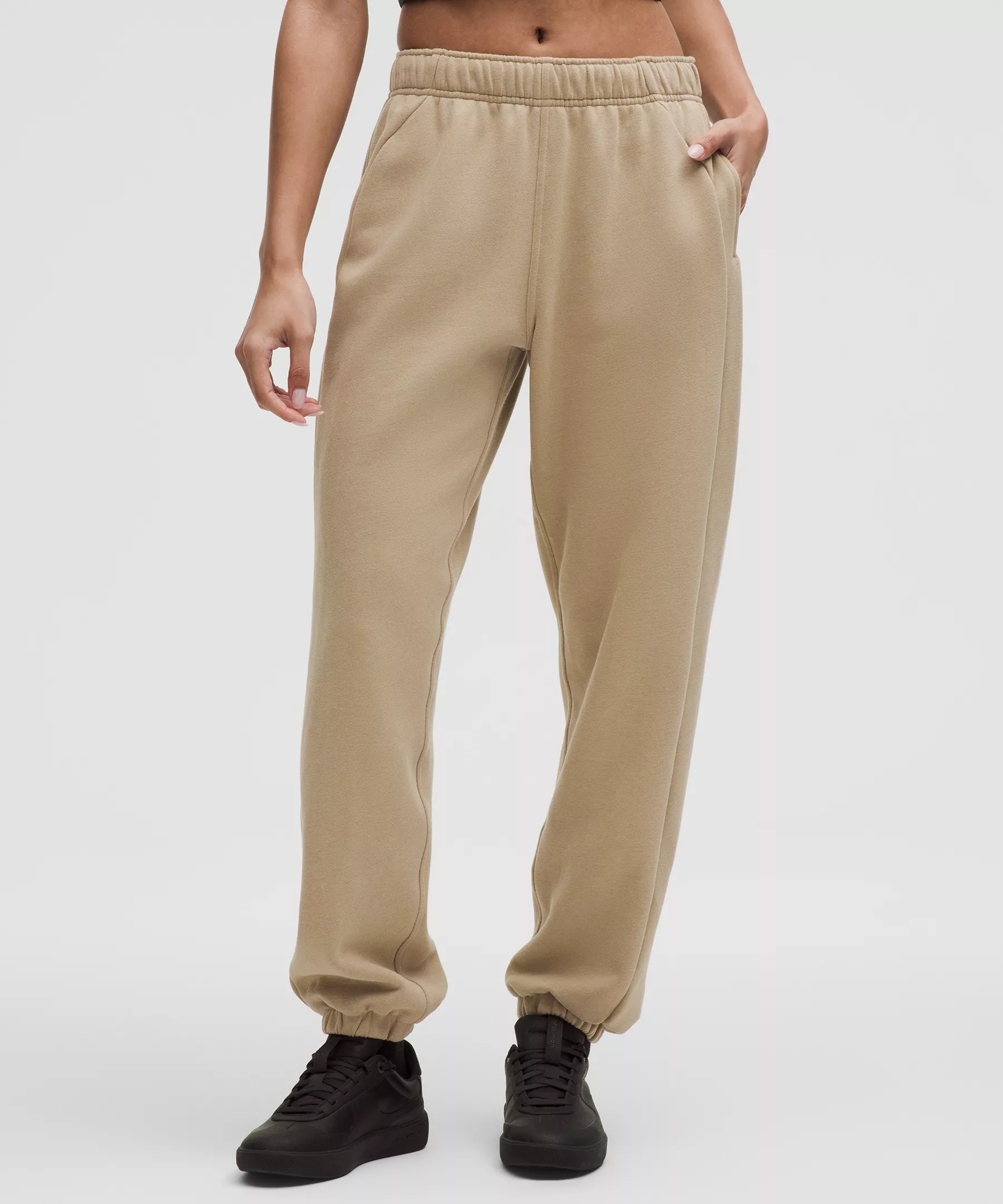 Designed for Casual Naturally Breathable, Cotton-Blend Fleece Fabric - Naturally breathable - Soft against skin - Lightweight warmth Mid Rise, Full Length - Oversized fit is exaggerated and feels extra roomy. Size up for a looser, baggier fit - Intended to sit at ankle for heights of 5'5"-5'8" Product Features - Hand pockets with hidden card sleeve - Cinch the interior drawcord to adjust your fit. Roll the waistband down to wear the drawcord on the outside Material and care Materials Pockets: 95% Cotton5% Elastane - Body: 70% Cotton30% Recycled Polyester Care Wash With Like Colors - Do Not Bleach - Tumble Dry Low - Do Not Iron - Do Not Dry Clean - Wash With Like Colors