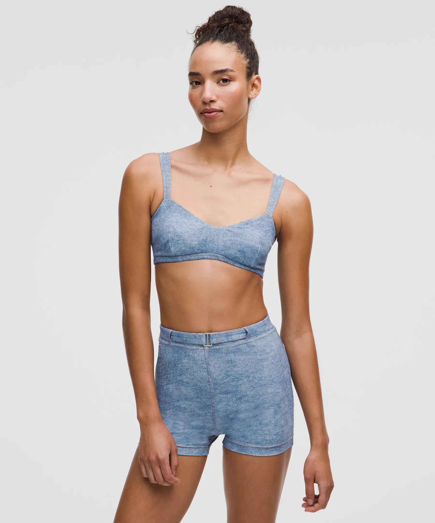 Designed for Training Quick-Drying, Everlux™ Fabric - Quick-drying - Sweat-wicking - Breathable - Fabric has a denim-like look - Added Lycra® fibre for stretch and shape retention - Over time the denim-like quality of this fabric will take on its own well-loved look Light Support, A/B Cups - Intended for low-impact activities Product Features - Underband curves up at centre front and straps taper where they attach to bra - Pockets for optional, removable cups Material and care Materials Bra Lining: 83% Recycled Polyester17% Elastane - Bra: 77% Nylon23% Lycra Elastane Care Machine Wash Cold - Do Not Bleach - Tumble Dry Low - Do Not Iron - Do Not Dry Clean - Wash With Like Colors