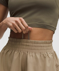 Designed for Running Lightweight, Swift Fabric - Lightweight - Four-way stretch - Sweat-wicking - Quick-drying - Lightweight liner is sweat-wicking and quick-drying with added stretch - 100% of the polyester in this product is recycled (excluding trims) High Rise, 2.5" Length - Relaxed fit is roomy through glutes and thighs Product Features - Built-in liner offers extra coverage - Brief liner has a hidden card pocket - Continuous drawcord Material and care Materials Body: 86% Recycled Polyester14% Elastane - Liner: 89% Recycled Polyester11% Lycra Elastane Care Machine Wash Cold - Do Not Bleach - Tumble Dry Low - Do Not Iron - Do Not Dry Clean - Wash With Like Colors