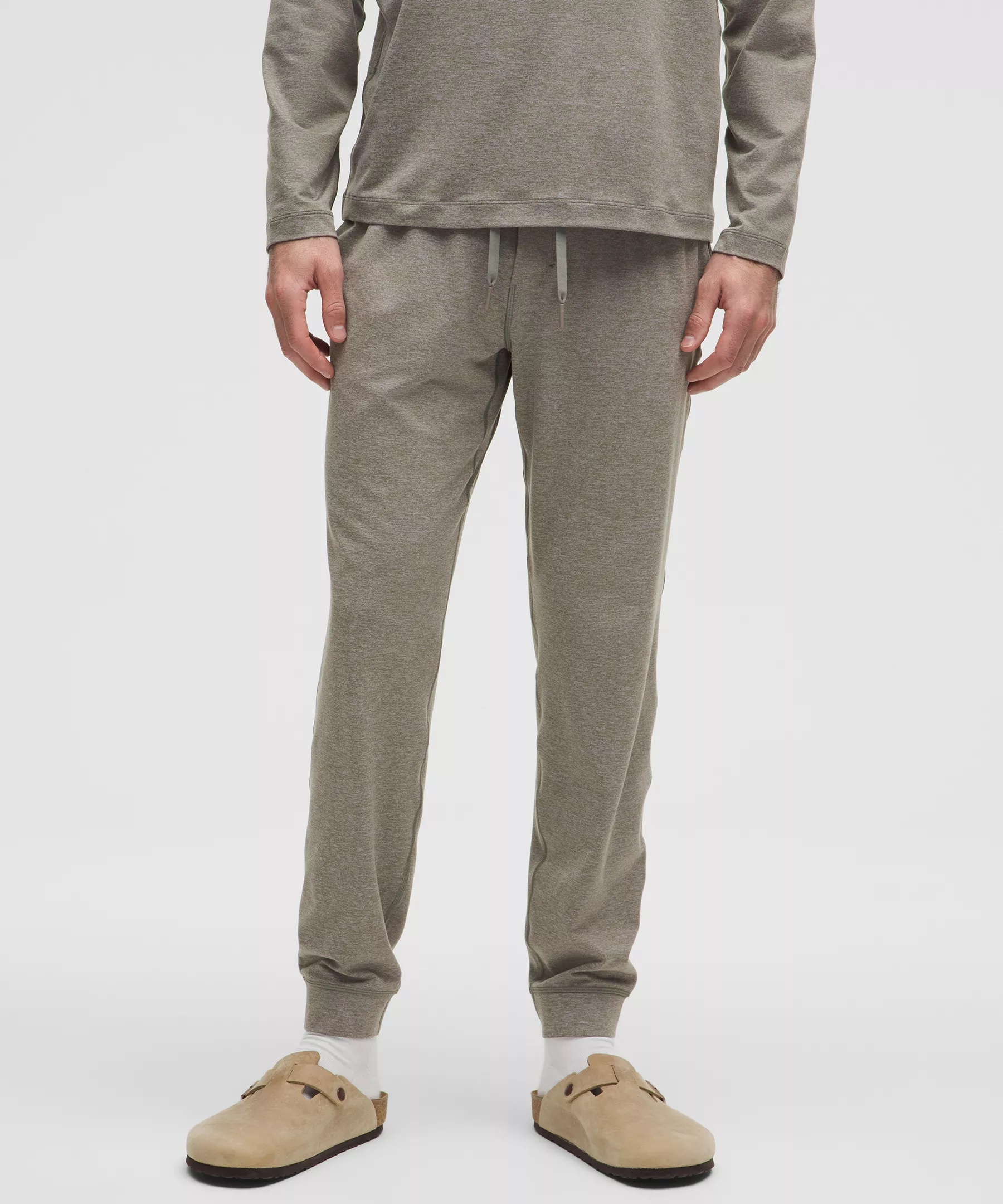 Designed for Casual Soft and Stretchy, Jersey Fabric - Luxuriously soft, brushed interior - Stretchy - Lightweight - Sweat-wicking - Quick-drying - Added elastane improves stretch and shape retention - This product contains recycled polyester made from repurposed plastic waste Slim-Tapered Fit - Slim fit skims glutes and thighs, then tapers to hem - Intended to sit at ankle for 32"-34" inseam Product Features - Hand pockets with hidden phone and coin sleeves - Zippered back pocket - Waistband drawcord can be worn inside or out Material and care Materials Pocket Lining: 82% Polyester18% Elastane - Body: 88% Recycled Polyester12% Elastane Care Wash With Like Colors - Do Not Bleach - Tumble Dry Low - Do Not Iron - Do Not Dry Clean - Wash With Like Colors