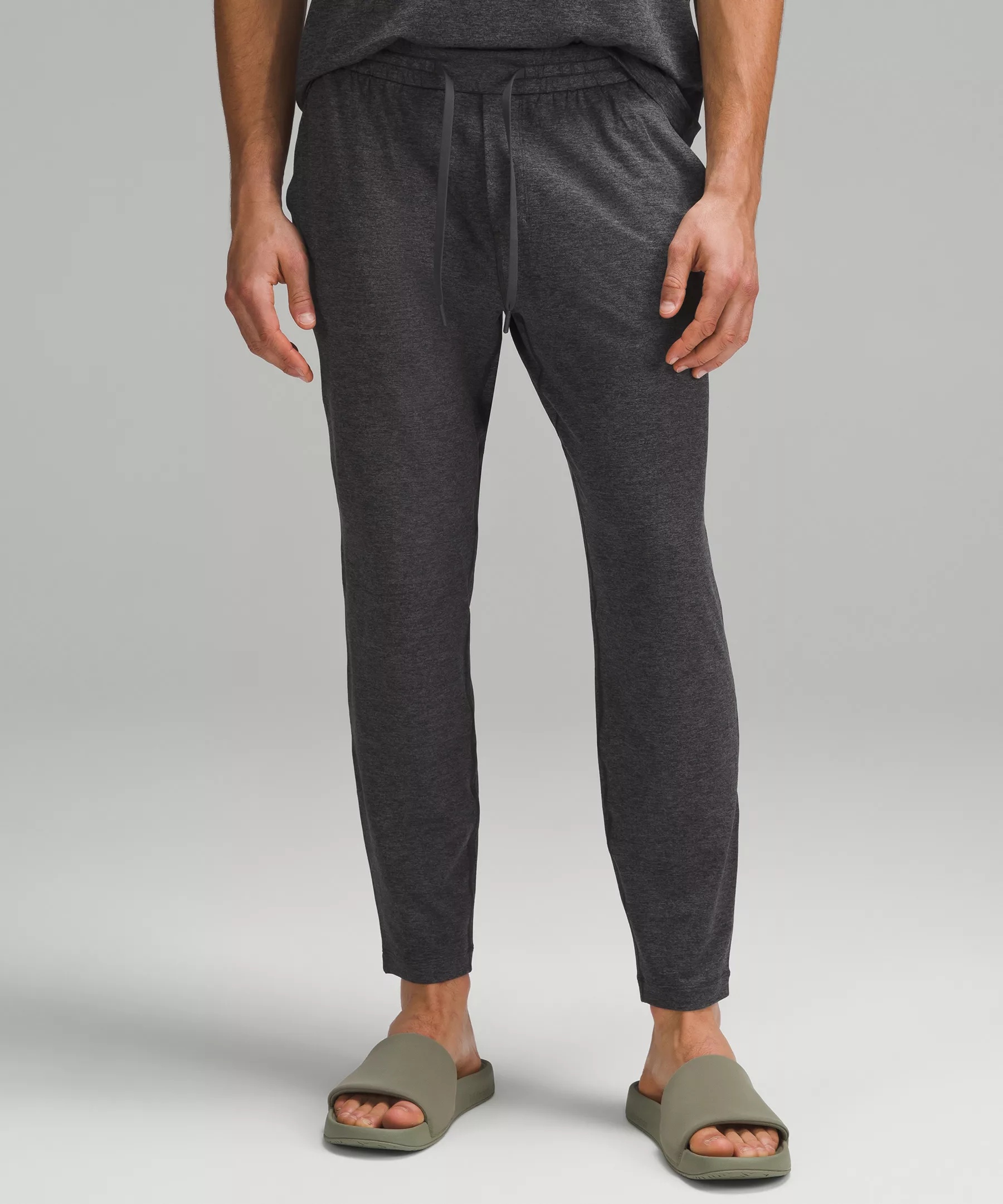 Soft and Stretchy, Jersey Fabric Luxuriously soft, brushed interior Stretchy Lightweight Sweat-wicking Quick-drying Added elastane improves stretch and shape retention This product contains recycled polyester made from repurposed plastic waste Slim-Tapered Fit Streamlined fit that skims glutes and thighs, then tapers to hem Intended to sit at ankle for 32"-34" inseam Product Features Hand pockets with hidden phone and coin sleeves Zippered back pocket Waistband drawcord can be worn inside or out Material and care Materials Pockets: 82% Polyester18% Elastane Body: 88% Recycled polyester12% Elastane Care Wash with like colours Machine wash cold Do not bleach Tumble dry low Do not iron Do not dry clean Imported