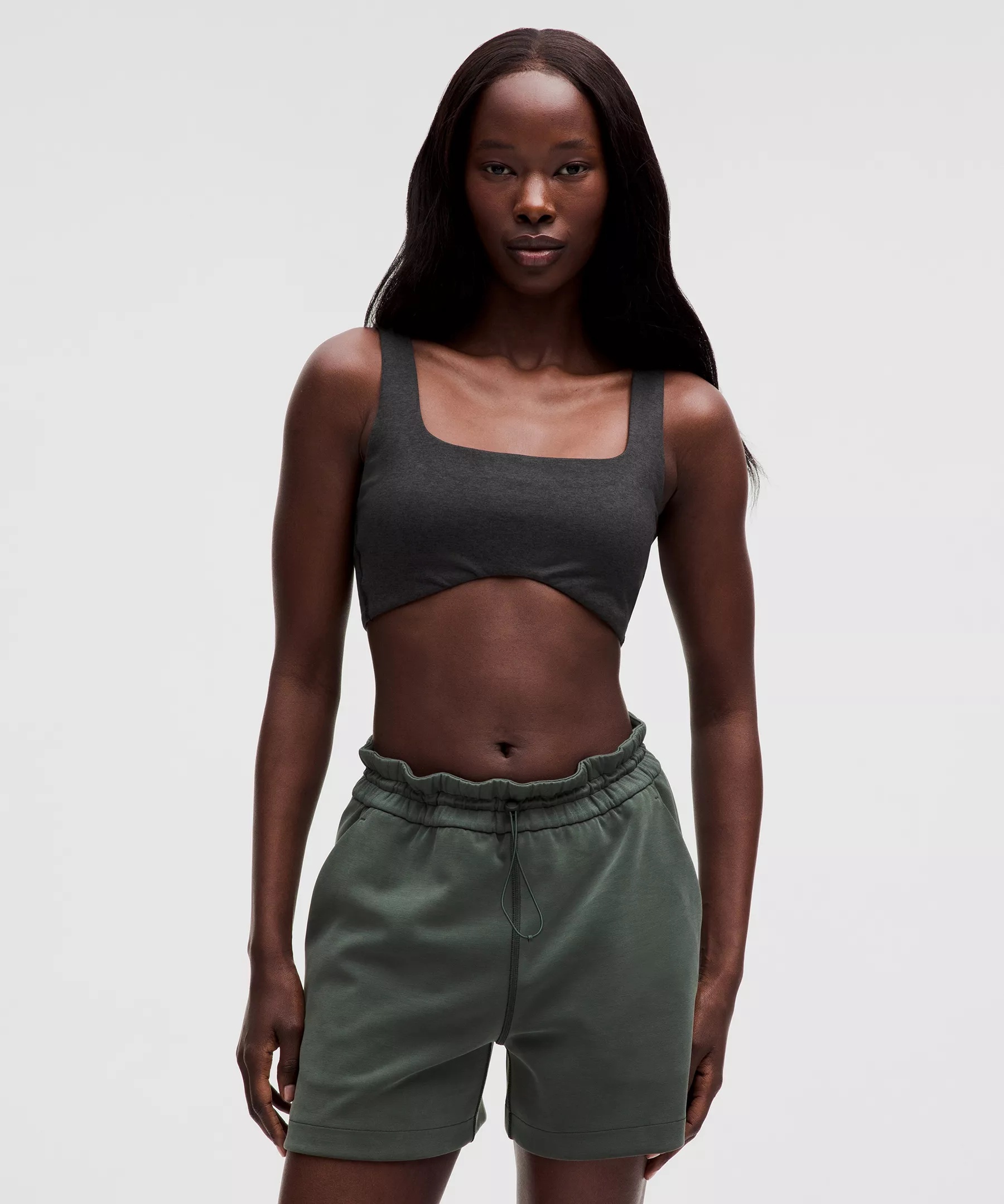 Super-Soft, Sueded Fabric Super soft Warm to the touch Four-way stretch Sweat-wicking Quick-drying Added elastane improves stretch and shape retention 100% of the polyester in this product is recycled (excluding trims) Light Support, B/C Cups Intended for low-impact activities Product Features A narrow elastic underband is comfortable and unrestrictive Open, square neckline and an upward curved underband Pockets for optional, removable cups Material and care Materials Bra: 88% Recycled Polyester12% Elastane Cup Lining: 73% Nylon27% Lycra Elastane Care Wash with like colours Machine wash cold Do not bleach Tumble dry low Do not iron Do not dry clean Imported