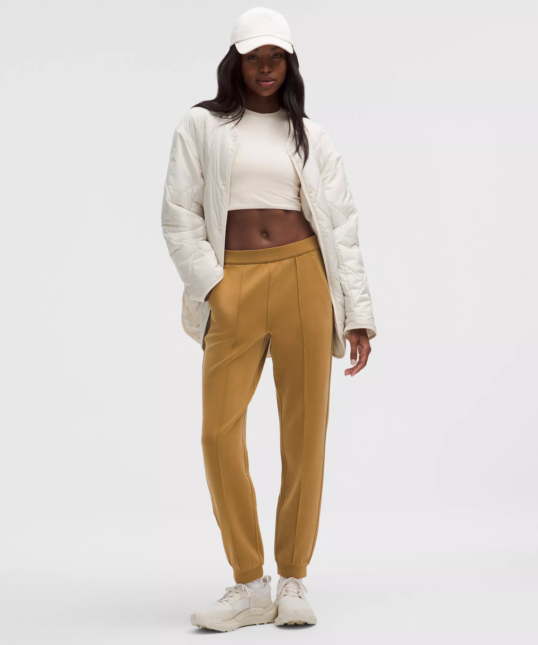 Designed for Casual Peach-Fuzz Soft, Softstreme™ Fabric - Peach-fuzz soft texture - Feels smooth next to skin - Four-way stretch - Weighty drape - Machine washable. Water drops can easily mark this fabric—a simple wash will remove them High Rise, Full Length - Classic fit is an easy fit that floats away from your body Product Features - Hand pockets, one with a hidden card sleeve - Elastic waistband with a hidden drawcord Material and care Materials Pocket Lining: 86% Recycled Polyester14% Elastane - Waistband: 53% Recycled Polyester38% Modal9% Elastane - Body: 53% Recycled Polyester38% Modal9% Elastane Care Machine Wash Cold - Do Not Bleach - Tumble Dry Low - Do Not Iron - Do Not Dry Clean - Turn Garment Inside Out - Wash Separately