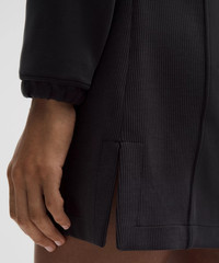 Designed for Casual Peach-Fuzz Soft, Softstreme™ Fabric - Peach-fuzz soft texture - Feels smooth next to skin - Four-way stretch - Weighty drape - Machine washable. Water drops can easily mark this fabric—a simple wash will remove them - Ribbed Softstreme™ panels on sides and tops of arms Classic Fit, Above the Knee Length - An easy fit that floats away from your body - Falls to just above the centre of the kneecap Product Features - Kangaroo pocket with a hidden card sleeve - Unzip the high neckline to cool off Material and care Materials Rib: 68% Recycled Polyester26% Lenzing Modal6% Elastane - Cuff: 53% Recycled Polyester38% Modal9% Elastane - Front Lining: 95% Cotton5% Elastane - Body: 53% Recycled Polyester38% Modal9% Elastane Care Machine Wash Cold - Do Not Bleach - Tumble Dry Low - Do Not Iron - Do Not Dry Clean - Wash Inside Out With Zipper Fully Closed, Wash Separately
