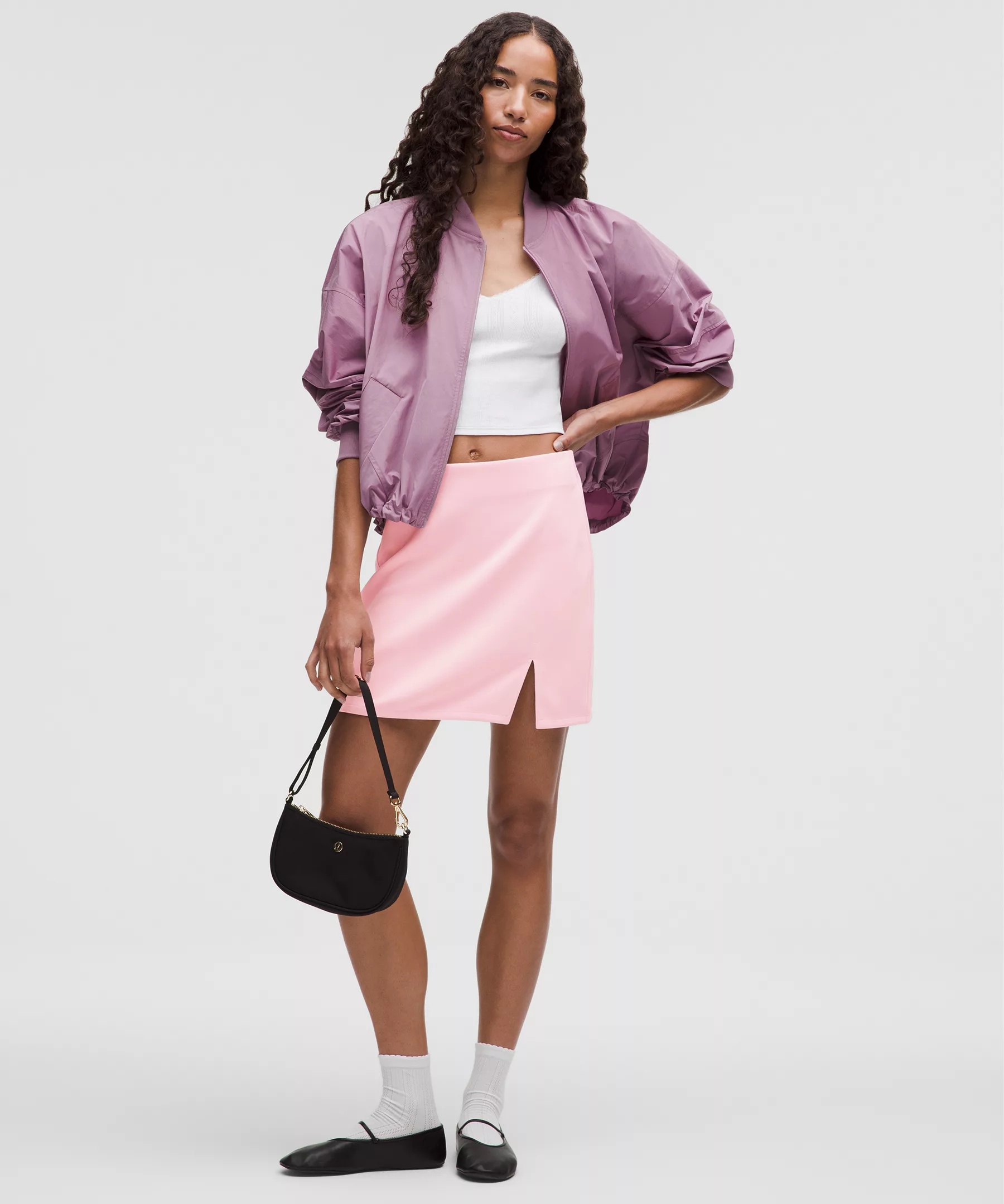Designed for Casual Peach-Fuzz Soft, Softstreme™ Fabric - Peach-fuzz soft texture - Feels smooth next to skin - Four-way stretch - Weighty drape - Machine washable. Water drops can easily mark this fabric—a simple wash will remove them High Rise, Mini Length - Slim fit skims your body Product Features - Wide, ribbed internal waistband is soft, stays put, and creates a sleek look Material and care Materials Under Hem: 100% Cotton - Body: 53% Recycled Polyester38% Modal9% Elastane Care Machine Wash Cold - Do Not Bleach - Tumble Dry Low - Do Not Iron - Do Not Dry Clean - Turn Garment Inside Out - Wash Separately