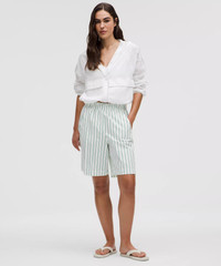 Stretch Woven Ruffle-Waist High-Rise Short 9"
