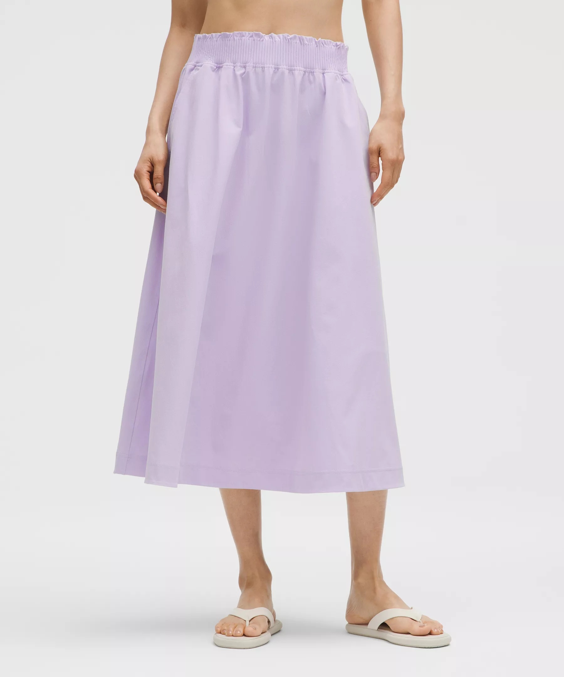 Stretch Woven Ruffle-Waist Midi Skirt
