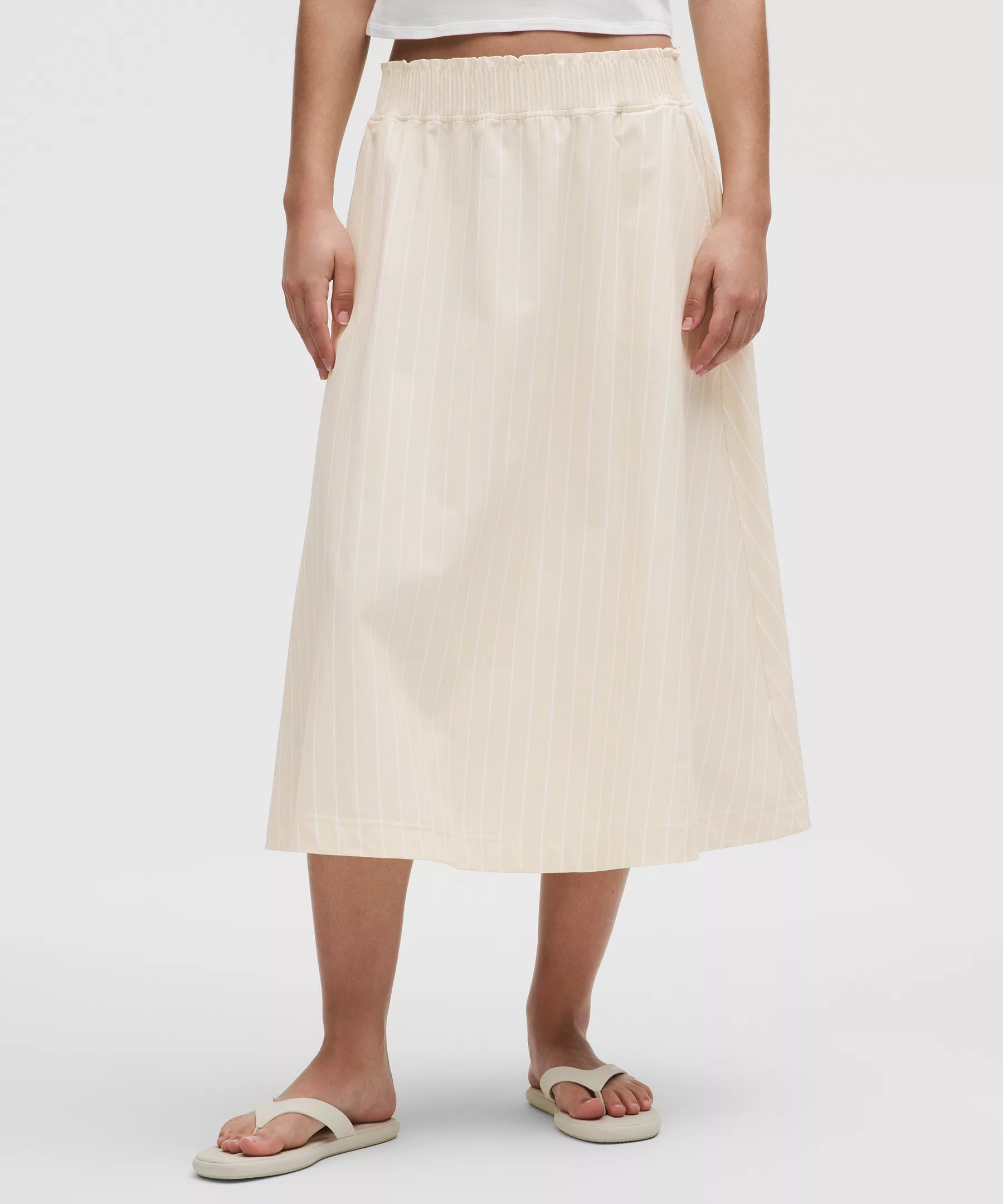Stretch Woven Ruffle-Waist Midi Skirt