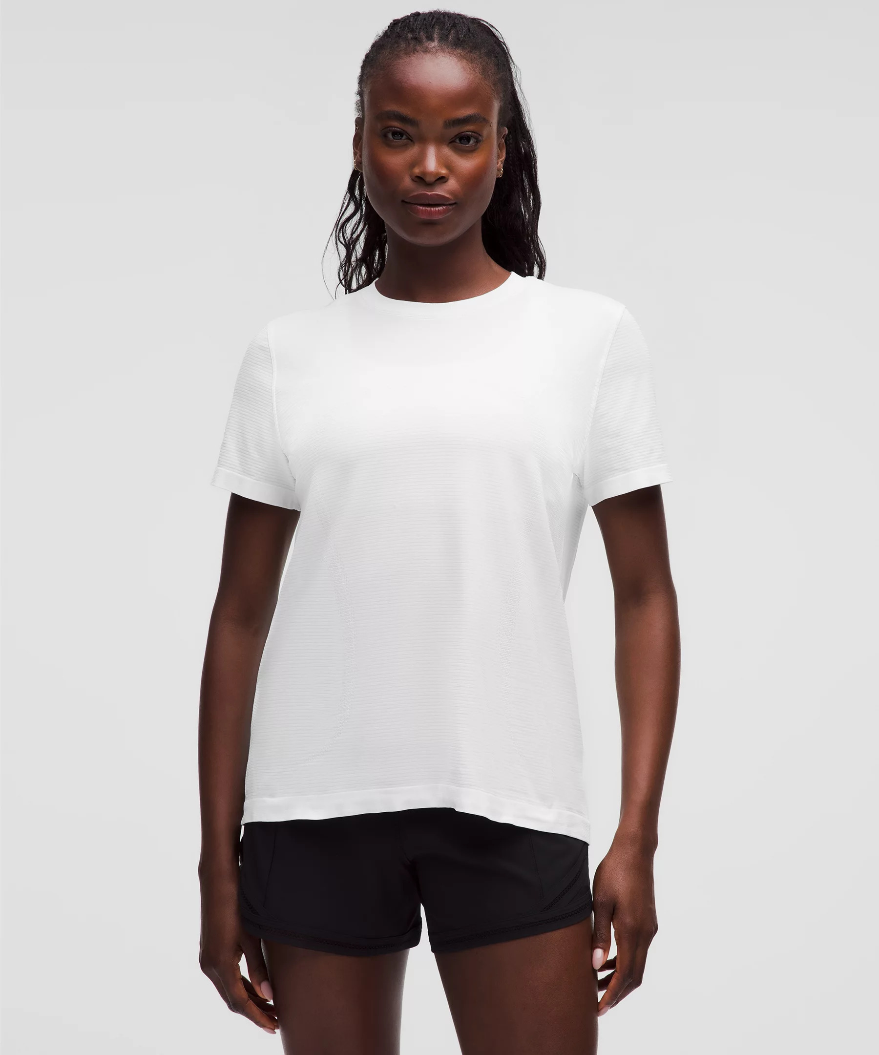 Designed for Running and Training Seamless Construction - Our seamless knitting technique engineers targeted texture and breathability into the garment without the need for extra seams - Lightweight - Quick-drying - Sweat-wicking - Added elastane for stretch and shape retention Updated Relaxed Fit, Hip Length - A loose fit with a little extra room - Sits below the waistband for moderate, everyday coverage Product Features - Silverescent™ technology, powered by X-STATIC®, inhibits the growth of odour-causing bacteria on the garment Material and care Materials All: 49% Nylon43% Recycled Polyester5% Elastane3% X-Static Nylon Care Machine Wash Cold - Do Not Bleach - Tumble Dry Low - Do Not Iron - Do Not Dry Clean - Contains biocidal silver nitrate (nano) Inhibits odour-causing bacteria - Wash With Like Colors