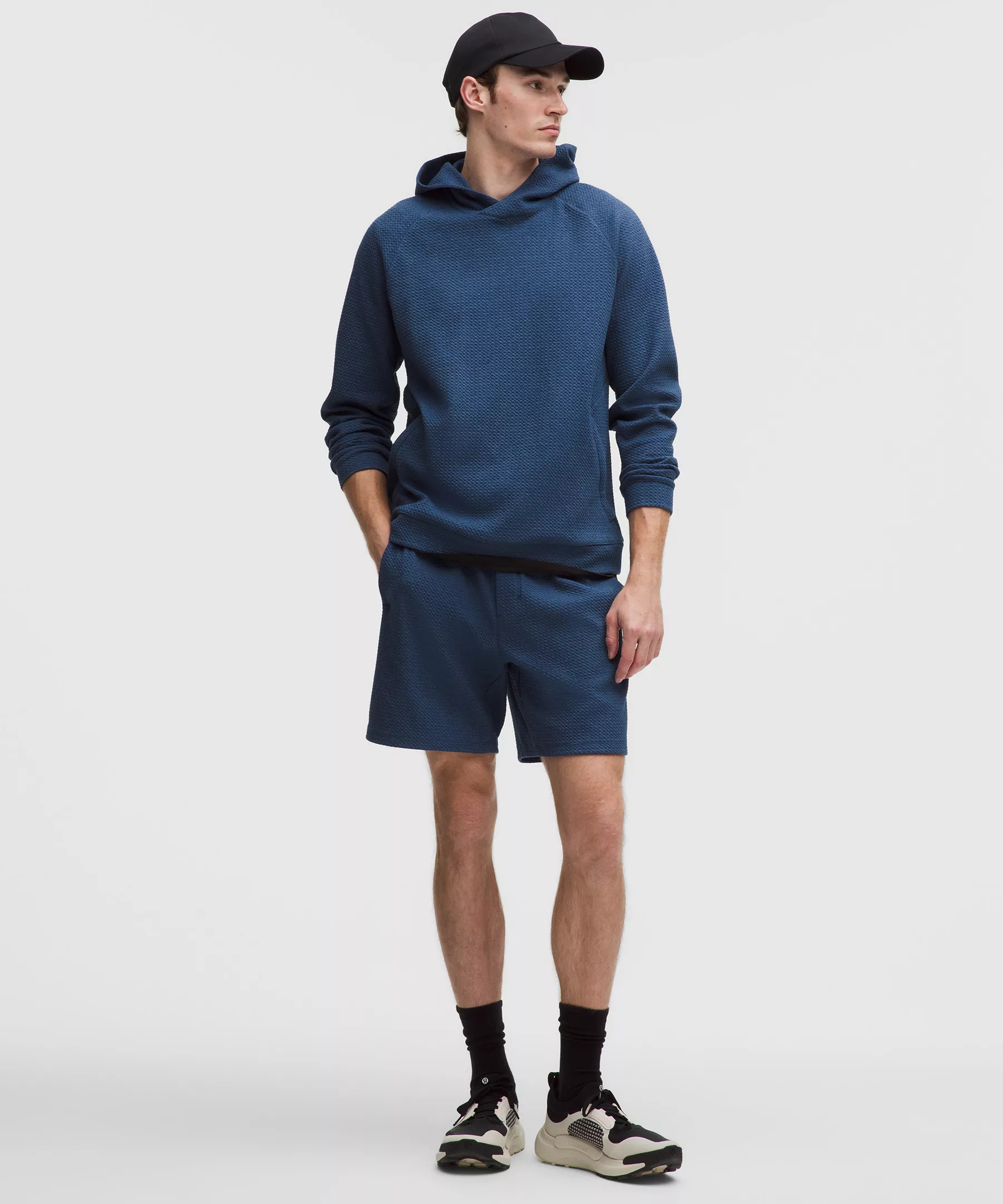 Designed for Casual Textured, Cotton-Blend Knit Fabric - Naturally breathable - Four-way stretch - Soft texture Classic Fit, 7" Length - Streamlined fit that gives glutes and thighs breathing room Product Features - Waistband drawcord can be worn inside or out to give you options and reduce bulk - Secure zippered pocket to store your phone and cards - Gusset is placed to allow increased mobility Material and care Materials Rib: 68% Recycled Polyester26% Lenzing Modal6% Elastane - Body: 53% Recycled Polyester38% Modal9% Elastane - Cuff: 53% Recycled Polyester38% Modal9% Elastane - Front Lining: 95% Cotton5% Elastane Care Machine Wash Cold - Do Not Bleach - Tumble Dry Low - Do Not Iron - Do Not Dry Clean - Wash With Like Colors