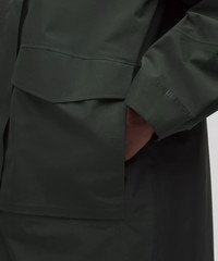Designed for Casual Waterproof Fabric - Waterproof - Windproof - Breathable - Seam-sealed to keep you dry Relaxed Fit, Knee Length - Relaxed fit feels roomy and can be worn over larger layers. Size down if you prefer a slimmer fit Product Features - Dual-entry hand pockets have snap closures at the top and zippered side entries with a hidden phone sleeve - Hood cinches at the front and back - Two-way zipper - Fishtail hem cinches in the back - Adjustable cuffs Material and care Materials Body: Face: 100% Recycled NylonMiddle: 100% PolyurethaneBack: 100% Recycled Polyester Care Machine Wash Cold - Do Not Bleach - Tumble Dry Low - Do Not Iron - Do Not Dry Clean - Wash With Garment Fully Closed - Wash With Like Colors - Wash with Zipper Fully Closed