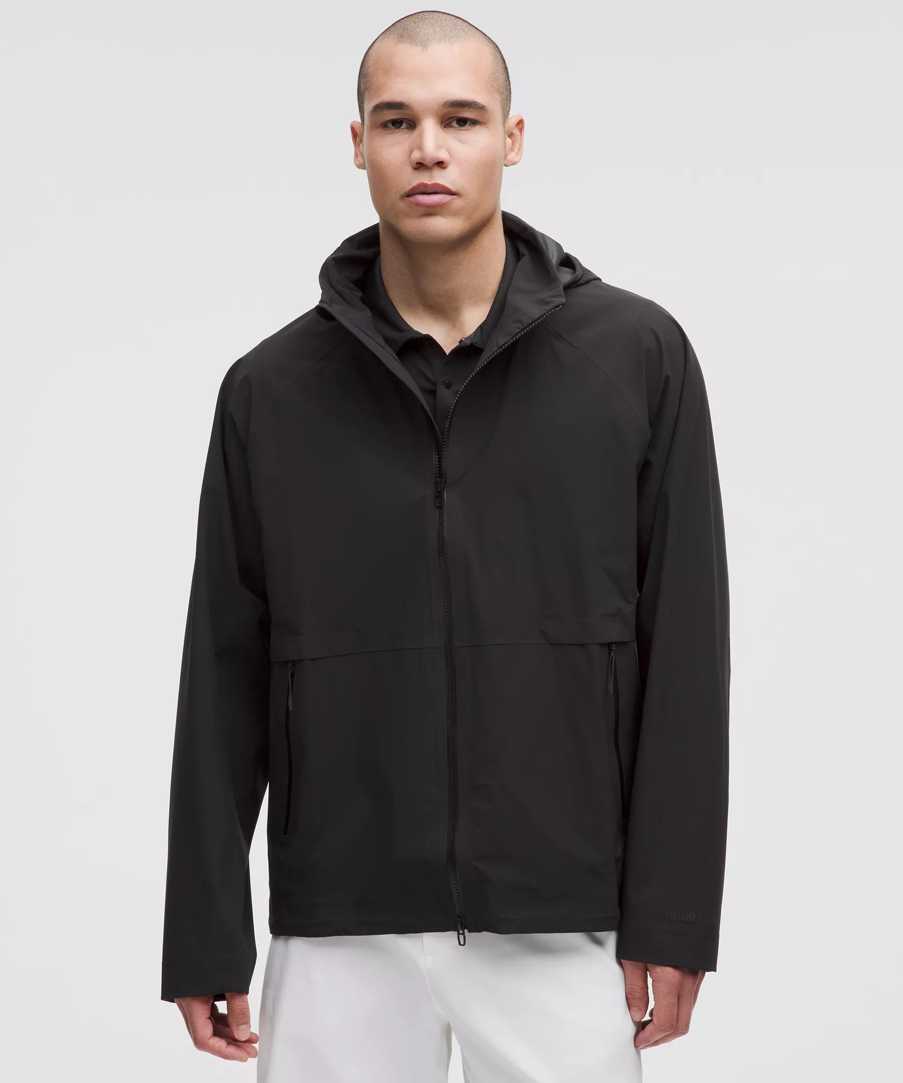 Designed for Golf Waterproof, Glyde™ Fabric - Waterproof - Four-way stretch - Breathable - Windproof - Seam-sealed for protection against the rain Classic Fit, Hip Length - Classic fit falls away from your body with room for layering Product Features - Hood stows into the collar—ensure the hood is fully dry before packing away - Zippered hand pockets with hidden phone sleeve - Pocket lanyard keeps keys secure and accessible - Discrete zippered back pocket keeps small items secure and out of the way - Underarm vents for added airflow - Two-way zipper allows you to adjust the fit to accommodate your swing - Adjustable cuffs - Cinchable hem Material and care Materials Body: Face: 84% Polyester, 16% ElastaneMiddle: 100% PolyurethaneBack: 100% Polyester Care Machine Wash Cold - Do Not Bleach - Tumble Dry Low - Do Not Iron - Do Not Dry Clean - Wash With Like Colors