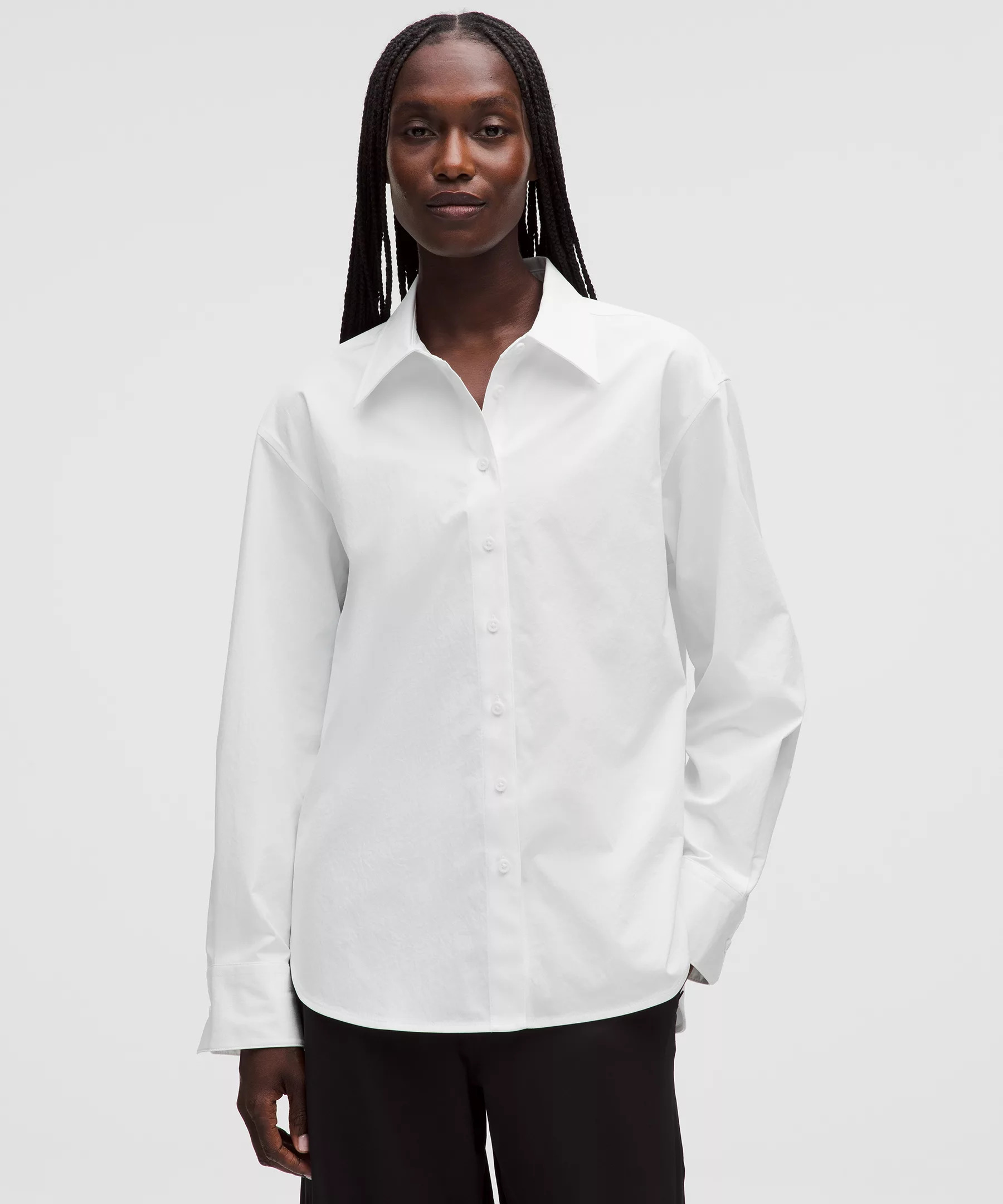 Designed for Casual Lightweight, Woven Fabric - Lightweight - Sweat-wicking - Quick-drying Relaxed Fit, Bum-Covering Length - A loose fit with a little extra room - Long length keeps bum and hips covered - Curved hem for extra coverage Product Features - Wide cuff with button placket - Box pleat on the back yoke Material and care Materials Body: 71% Polyester29% Elastomultiester Care Machine Wash Cold - Do Not Bleach - Tumble Dry Low - Do Not Iron - Do Not Dry Clean - Wash With Like Colors