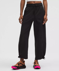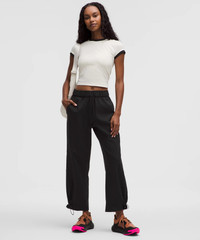 Designed for Casual Naturally Breathable, WovenAir™ Fabric - Naturally breathable - Four-way stretch - Sweat-wicking - Quick-drying - Buttery-soft Nulu™ fabric on the inside of waistband High Rise, Full Length - Full length intended to sit at ankle - Relaxed fit is roomy through glutes and thighs Product Features - Drawcord to customize fit - Hand pockets with hidden card sleeve - Cinchable shock cord cuffs Material and care Materials Body: 53% Recycled Polyester43% Elastomultiester4% Elastane - Inner Waistband: 81% Nylon19% Lycra Elastane - Pocket Lining: 86% Recycled Polyester14% Elastane Care Machine Wash Cold - Do Not Bleach - Tumble Dry Low - Do Not Iron - Do Not Dry Clean - Wash With Like Colors