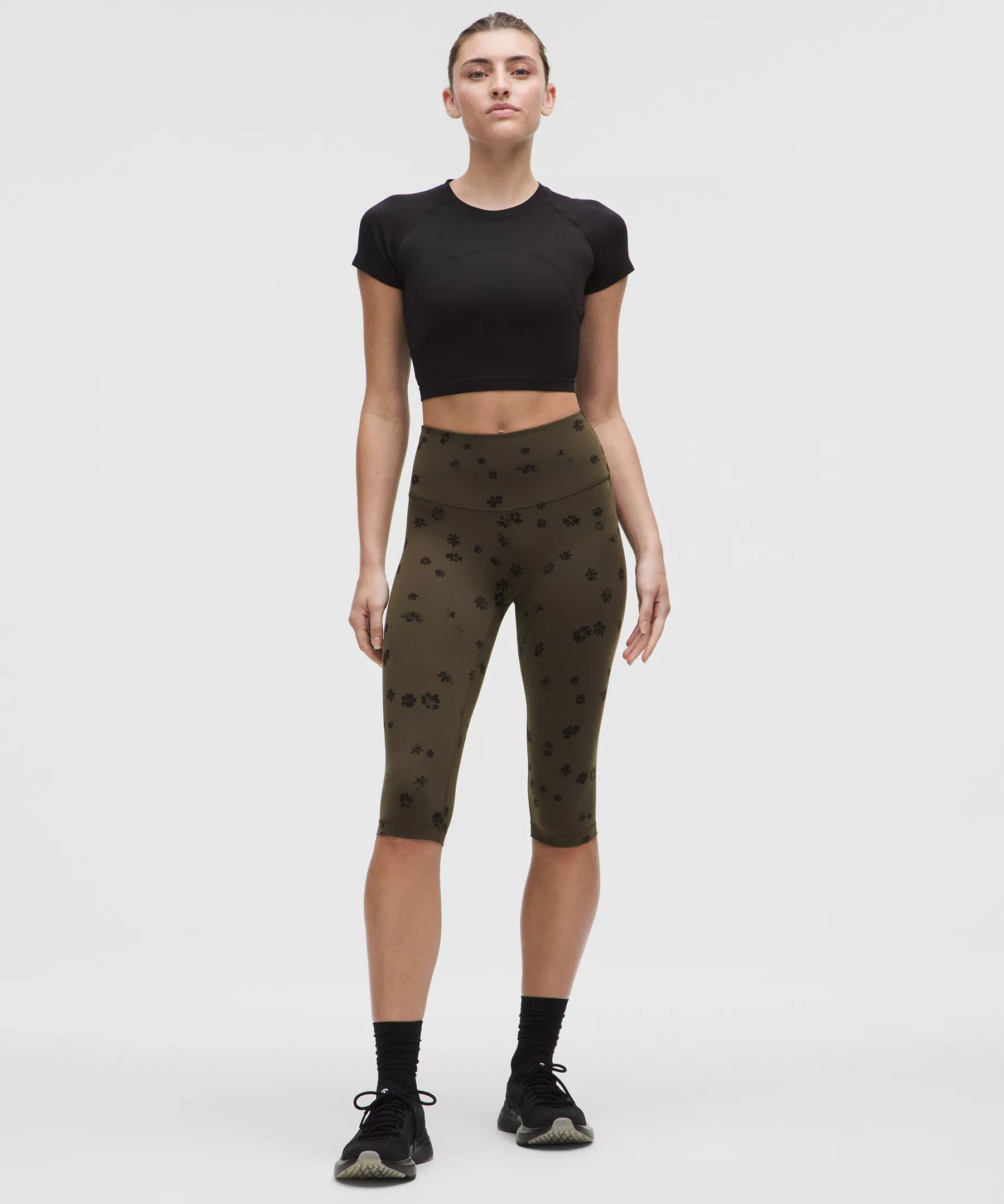 Designed for Training Our Fastest-Drying, Everlux™ Fabric - Our fastest-drying fabric - Breathable - Sweat-wicking - Four-way stretch - Supportive - Feels cool and sleek on the inside, soft and brushed on the outside - Added Lycra® fibre for stretch and shape retention High Rise, 15" Length - Intended to sit just below knee Product Features - Waistband drawcord keeps your leggings in place so you don’t have to pull them up - Hidden pocket in the waistband has space for your card and keys Material and care Materials Body: 75% Recycled Polyester19% Lyocell6% Lycra Elastane Care Machine Wash Cold - Do Not Bleach - Tumble Dry Low - Do Not Iron - Do Not Dry Clean - Wash With Like Colors