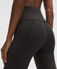 Our Fastest-Drying, Everlux™ Fabric Our fastest-drying fabric Breathable Sweat-wicking Four-way stretch Supportive Feels cool and sleek on the inside, soft and brushed on the outside Added Lycra® fibre for stretch and shape retention High Rise, 25” Length Intended to sit above ankle Product Features Two side drop-in pockets fit your phone Hidden pocket in the waistband has space for your card and keys Waistband drawcord keeps your leggings in place so you don’t have to pull them up Material and care Materials Waistband Lining: 56% Polyester33% Coolmax Polyester11% Lycra Elastane Side Pocket: 89% Nylon11% Elastane Body: 77% Nylon23% Lycra Elastane Care Machine Wash Cold Do Not Bleach Tumble Dry Low Do Not Iron Do Not Dry Clean Wash With Like Colors