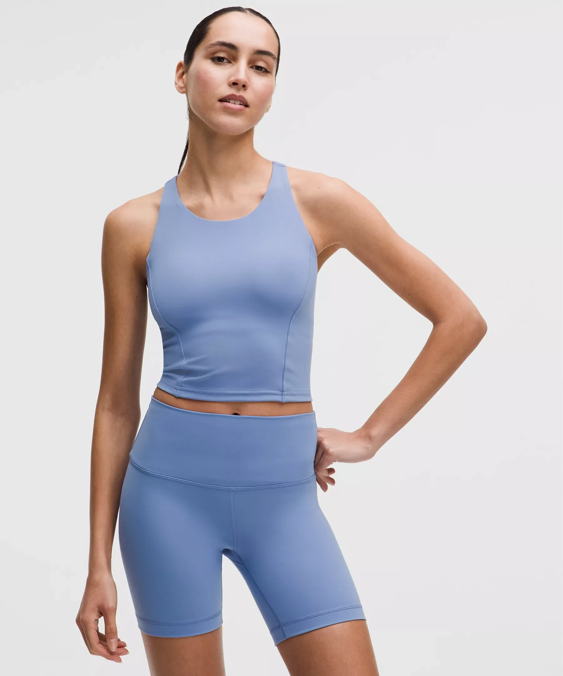 Designed for Training Our Fastest-Drying, Everlux™ Fabric - Our fastest-drying fabric - Breathable - Sweat-wicking - Four-way stretch - Supportive - Feels cool and sleek on the inside, soft and brushed on the outside - Added Lycra® fibre for stretch and shape retention Medium Support, B/C Cups - Intended to provide medium support for B/C cups - Tight fit contours your body - Cropped length is cut above the waist—perfect with high-rise pants - Intended for medium-impact activities Product Features - Built-in shelf bra for added support and coverage - Pockets for optional, removable cups - Racerback shape allows for full range of movement Material and care Materials Bra Lining: 83% Polyester (recycled)17% Elastane - Body: 77% Nylon23% Lycra Elastane - Cup Lining: 90% Polyester (recycled)10% Lycra Elastane Care Machine Wash Cold - Do Not Bleach - Tumble Dry Low - Do Not Iron - Do Not Dry Clean - Wash With Like Colors