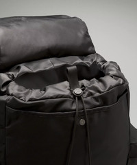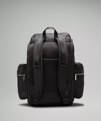 Water-Repellent Fabric Measurements Dimensions: 36cm x 15.5cm x 51cm (14.2" x 6.1" x 20.1") Volume: 25L Product Features Side pockets for quick access to water bottle and small items Zippered exterior pockets Exterior padded pocket fits a 16" laptop Adjustable exterior straps to secure your yoga mat or jacket Trolley-compatible sleeve Interior pockets keep you organized and your sweaty gear separate Material and care Materials Lining: 100% Recycled polyester Back panel: 100% Polyester Body: 100% Nylon Care Spot clean Do not wash Do not bleach Do not tumble dry Do not iron Do not dry clean Imported