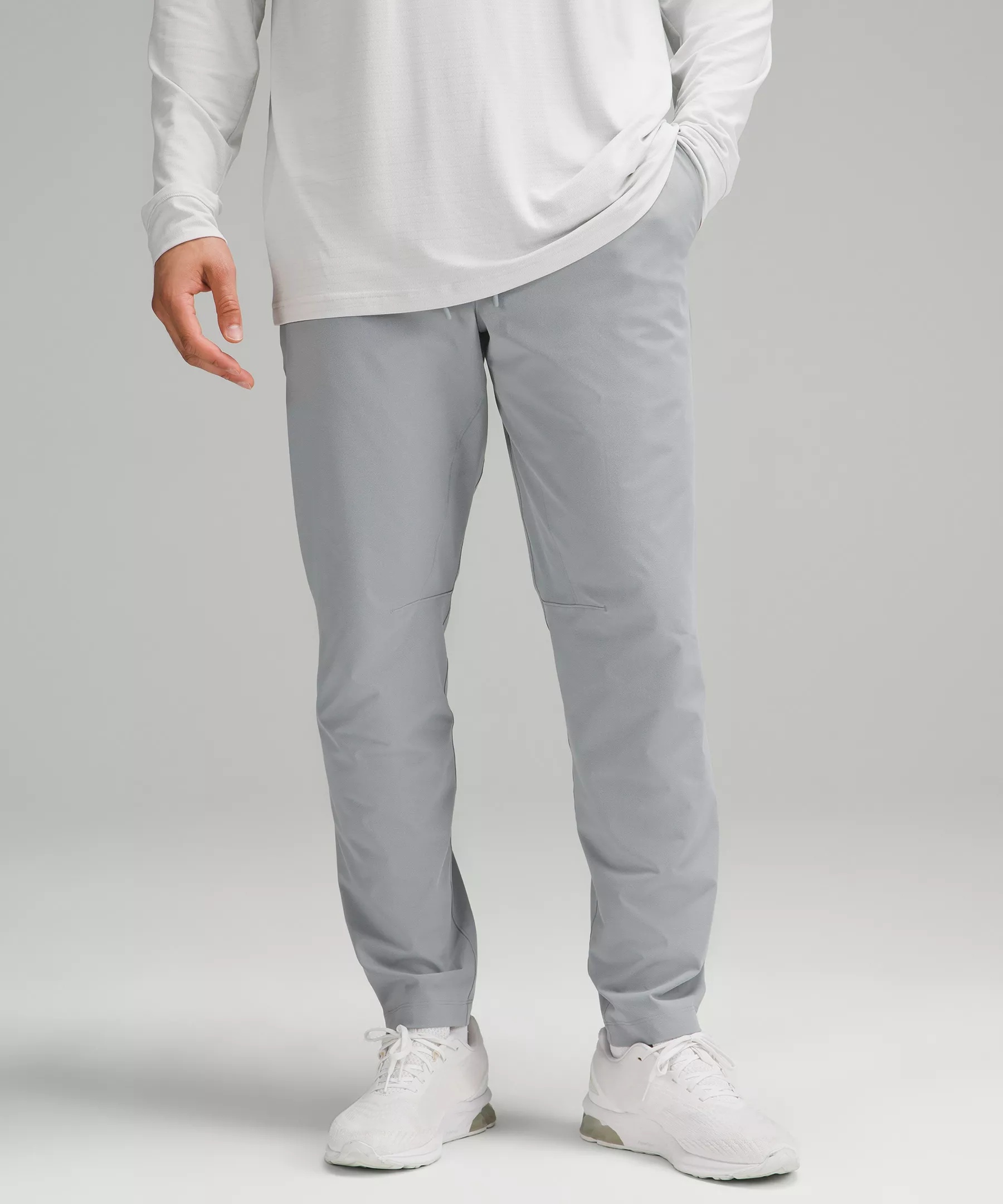 Sweat-Wicking, Swift Fabric Sweat-wicking Quick-drying This product contains recycled polyester made from repurposed plastic waste Slim-Tapered Fit Slim fit skims glutes and thighs, then tapers to hem Intended to sit just below ankle for 32"-34" inseam Product Features Streamlined hand pockets lie flat and have hidden coin and phone sleeves Zippered side pocket Waistband drawcord can be worn inside or out Gusset is placed to allow increased mobility Material and care Materials Knuckle side pocket: 100% Recycled polyester Outer waistband: 75% Nylon25% Lycra® elastane Body: 50% Elastomultiester50% Recycled polyester Palm side pocket: 89% Recycled polyester11% Lycra® elastane Inner waistband: 89% Recycled polyester11% Lycra® elastane Care Wash with like colours Machine wash cold Do not bleach Tumble dry low Do not iron Do not dry clean Imported