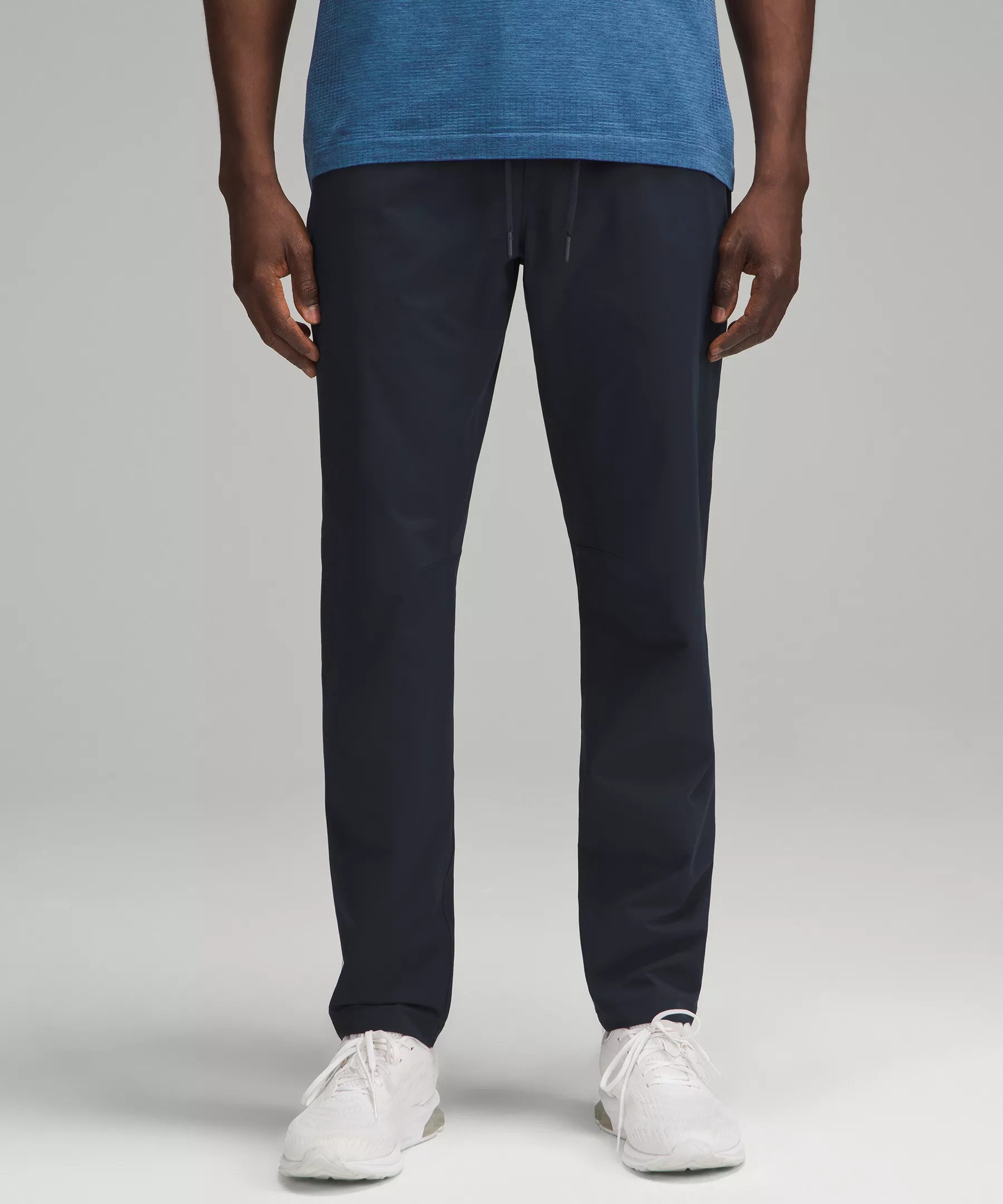 Sweat-Wicking, Swift Fabric Sweat-wicking Quick-drying This product contains recycled polyester made from repurposed plastic waste Slim-Tapered Fit Slim fit skims glutes and thighs, then tapers to hem Intended to sit just below ankle for 32"-34" inseam Product Features Streamlined hand pockets lie flat and have hidden coin and phone sleeves Zippered side pocket Waistband drawcord can be worn inside or out Gusset is placed to allow increased mobility Care Wash with like colours Machine wash cold Do not bleach Tumble dry low Do not iron Do not dry clean Imported
