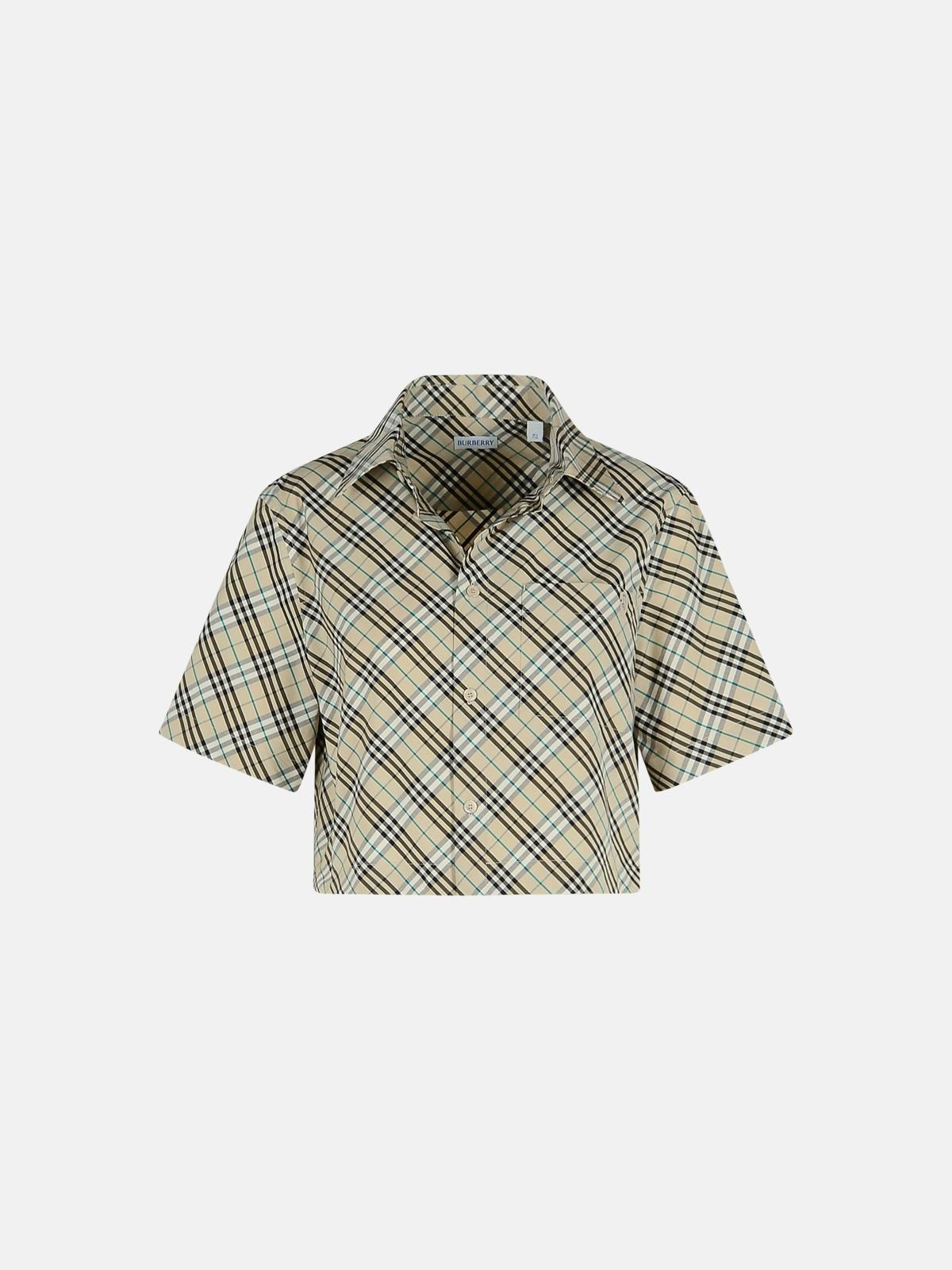 Manufacture code: 8101121 C1849 Retail code: 8101121 C1849 Tone-on-tone collar, central button closure, 'Check' pattern, front pocket, crop cut Main: 100% cotton Made in Romania