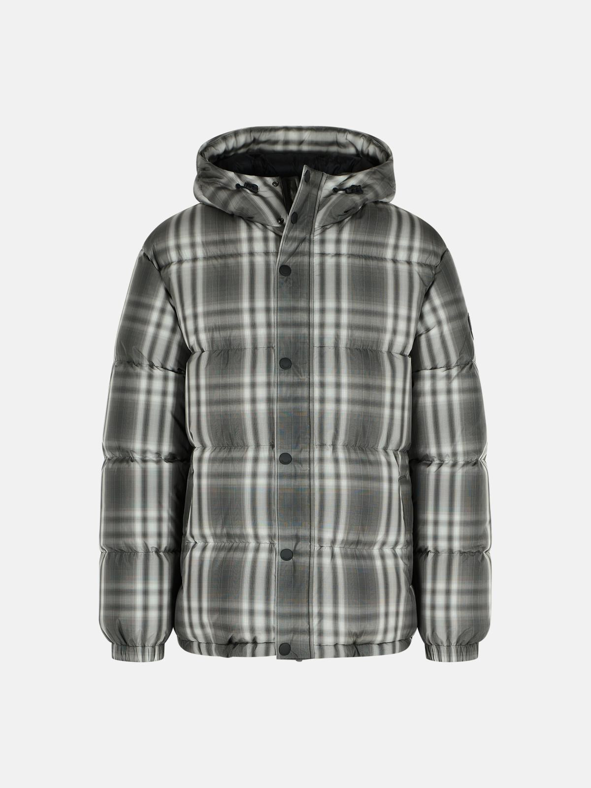 GRADIENT 'CHECK' HOODED BLACK POLYESTER DOWN JACKET