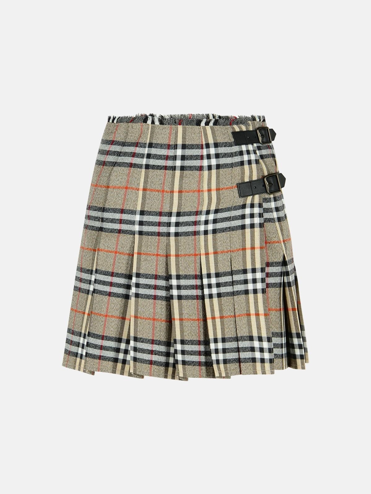 Manufacture code: 8113042 C3142 Retail code: 8113042 C3142 Side button closure and B-shaped buckle, short, thin fringes at the waist, 'Check' pattern Main: 100% wool Made in Poland