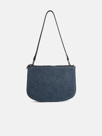 Manufacture code: X10330 P6717 H1410 Retail code: X10330 P6717 H1410 Made of solarized denim, embossed front logo, adjustable and removable shoulder strap, removable handle, top zip closure, inner slip pocket\n21.5 x 16 x 3.5 cm Main: 90% cotton, 10% polyurethane Made in China