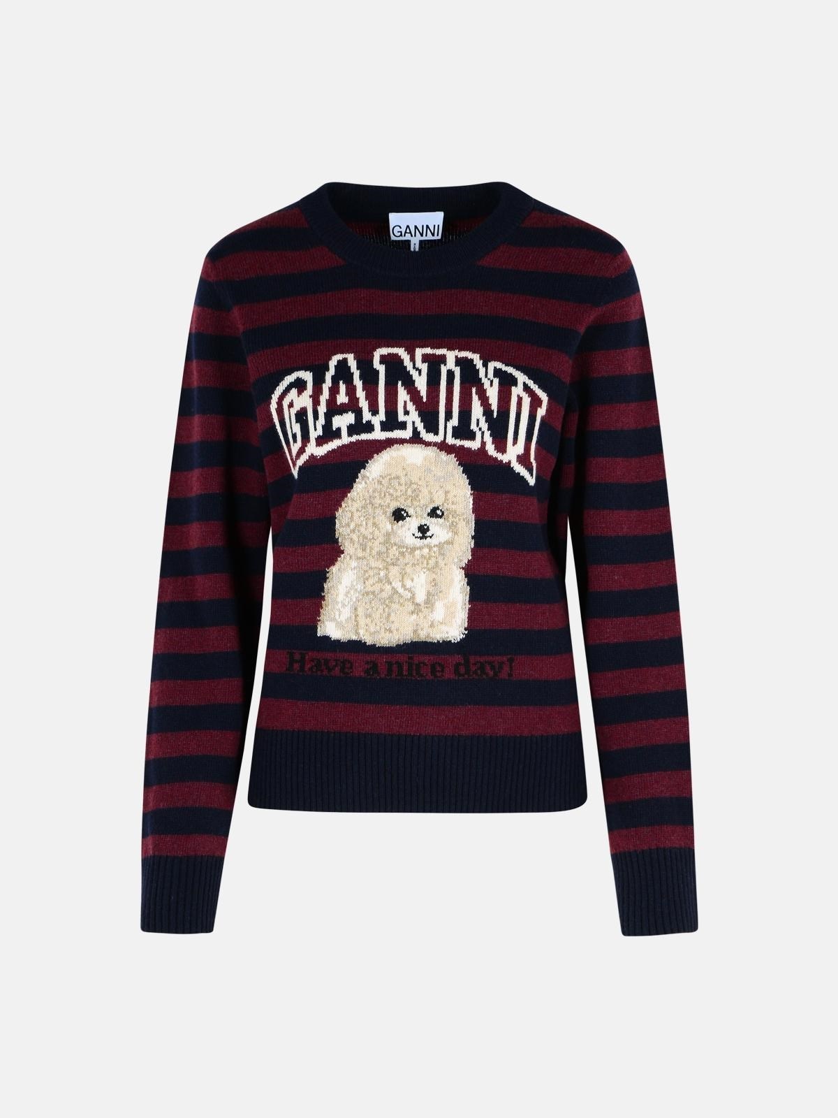Manufacture code: K2567 999 Retail code: K2567 999 Ribbed round neckline, striped pattern, long sleeves, contrast 'GANNI' logo, poodle graphics, 'Have anice day!' message, ribbed trims Main: 80% wool, 30% nylon Made in Moldova, Republic of