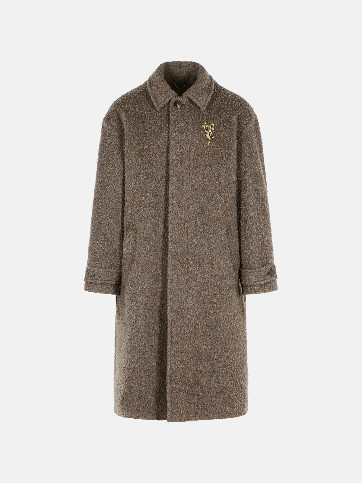 Manufacture code: GMP02344.P002091 60184 Retail code: GMP02344.P002091 60184 Wide collar, concealed button closure, metal brooch on the chest, side welt pockets, adjustable wrist with buttons, back slit hem Main: 50% virgin wool, 33% mohair, 17% nylon Made in Italy