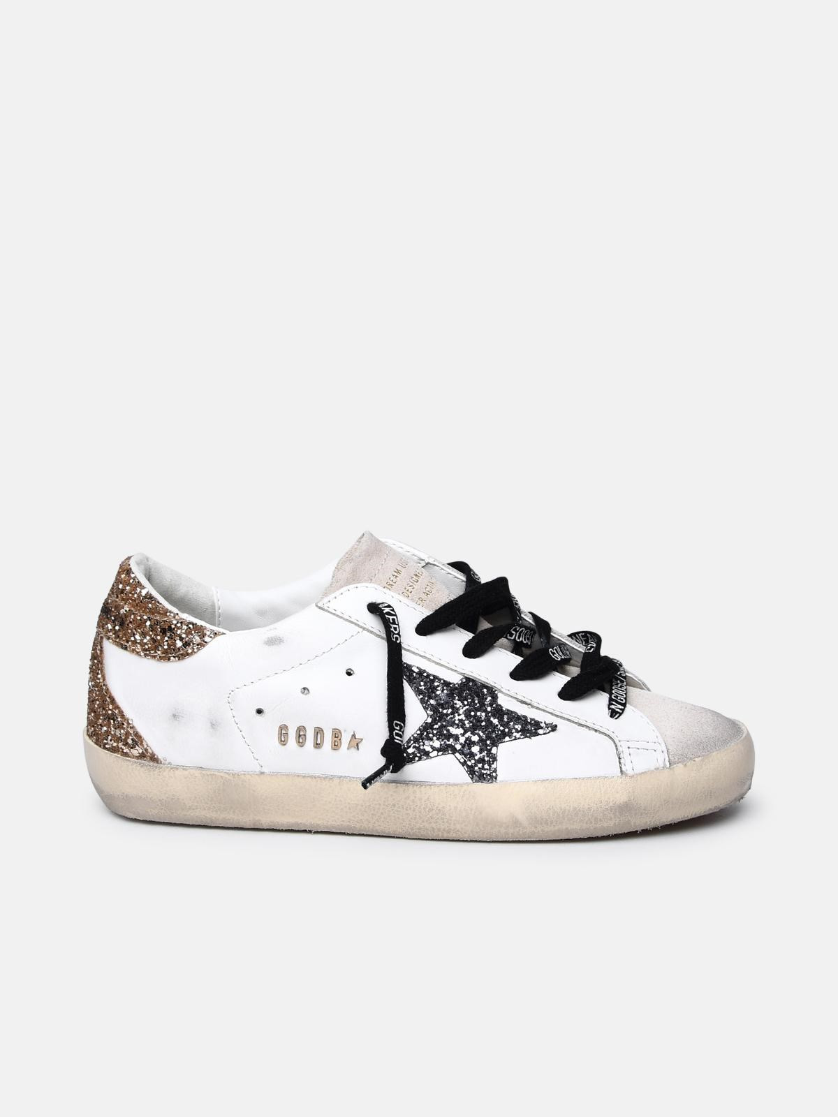 Manufacture code: GWF00102.F005358 82532 Retail code: GWF00102.F005358 82532 Leather sneakers with contrast suede and glitter inserts, rounded toe, contrast embossed lettering on the suede tongue, contrast glitter star on the side, 3D metal 'GGDB' application on the side, gold glitter heel with contrasting logo on the back, rubber sole Made in Italy