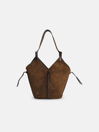 Manufacture code: PM0066FA-C2C13M 50BZ Retail code: PM0066FA-C2C13M 50BZ Suede tote bag with woven details, to be carried by hand or shoulder, smooth leather handle, smooth leather loops and metal rivets, woven smooth leather details, leather knot closure, twill lining, inner zip pocket\n48 x 40 x 21 cm Main: 100% calf leather Made in Tunisia