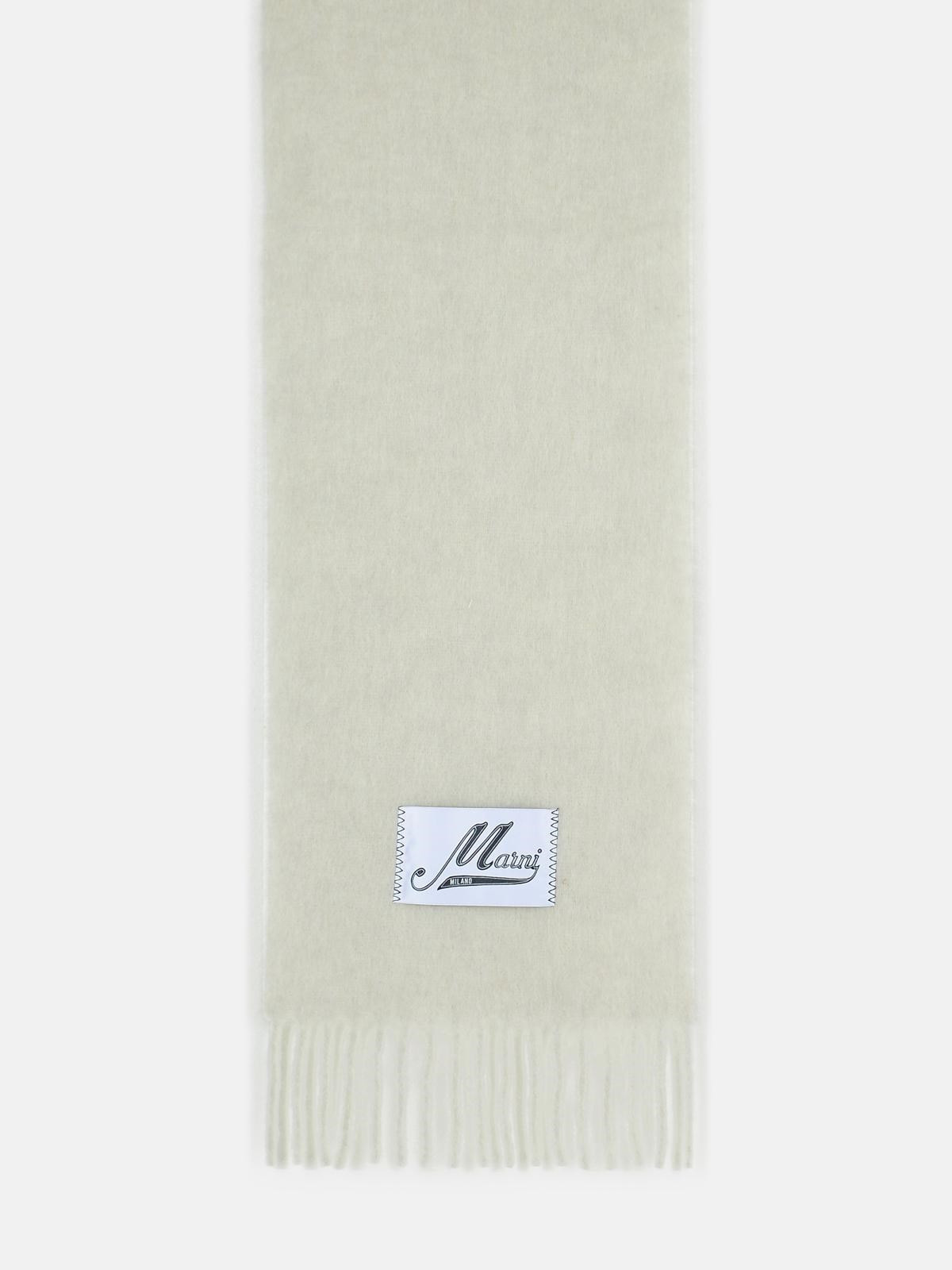 Manufacture code: SCMC0059Y0 UTW918 00N15 Retail code: SCMC0059Y0 UTW918 00N15 Made of brushed alpaca, fringed hem, maxi satin label with italic 'Marni' logo \n196 x 35 cm Main: 80% virgin wool, 20% nylon Made in Italy
