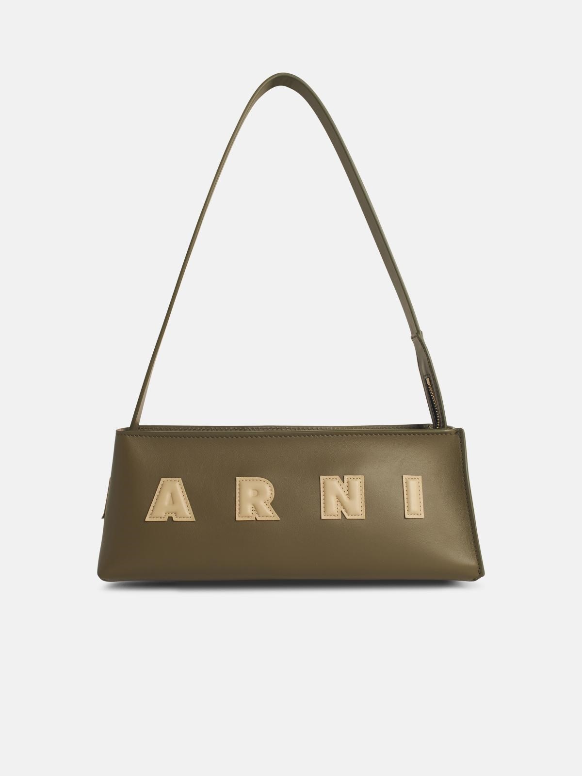 Manufacture code: SBMP0248U0 P6483 ZO959 Retail code: SBMP0248U0 P6483 ZO959 Made of smooth calf leather, compact baguette design with double handle, embossed 'Marni' lettering in contrasting color, seamless construction with suede lining\n28 x 11.5 x 9.5 cm Main: 100% calf leather Made in Italy